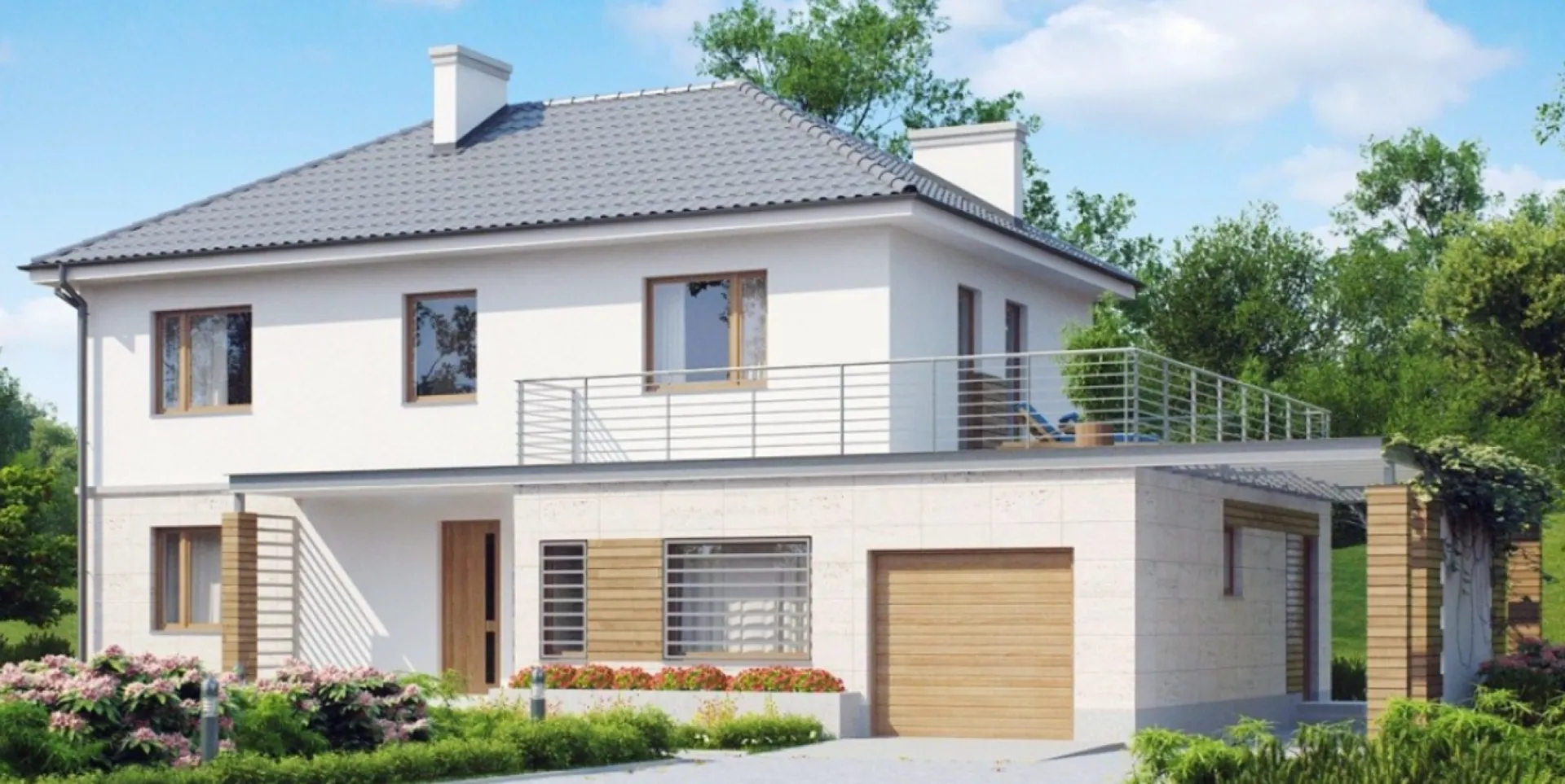 Дом с просторной террасой над гаражом S3-192-2 (Zx6)