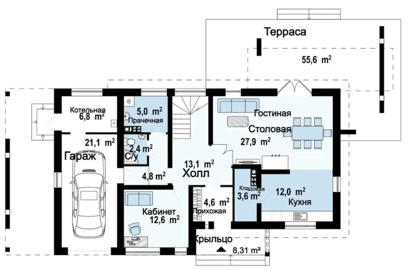 Заказать конусльтацию по:Дом с просторной террасой над гаражом S3-192-2 (Zx6)