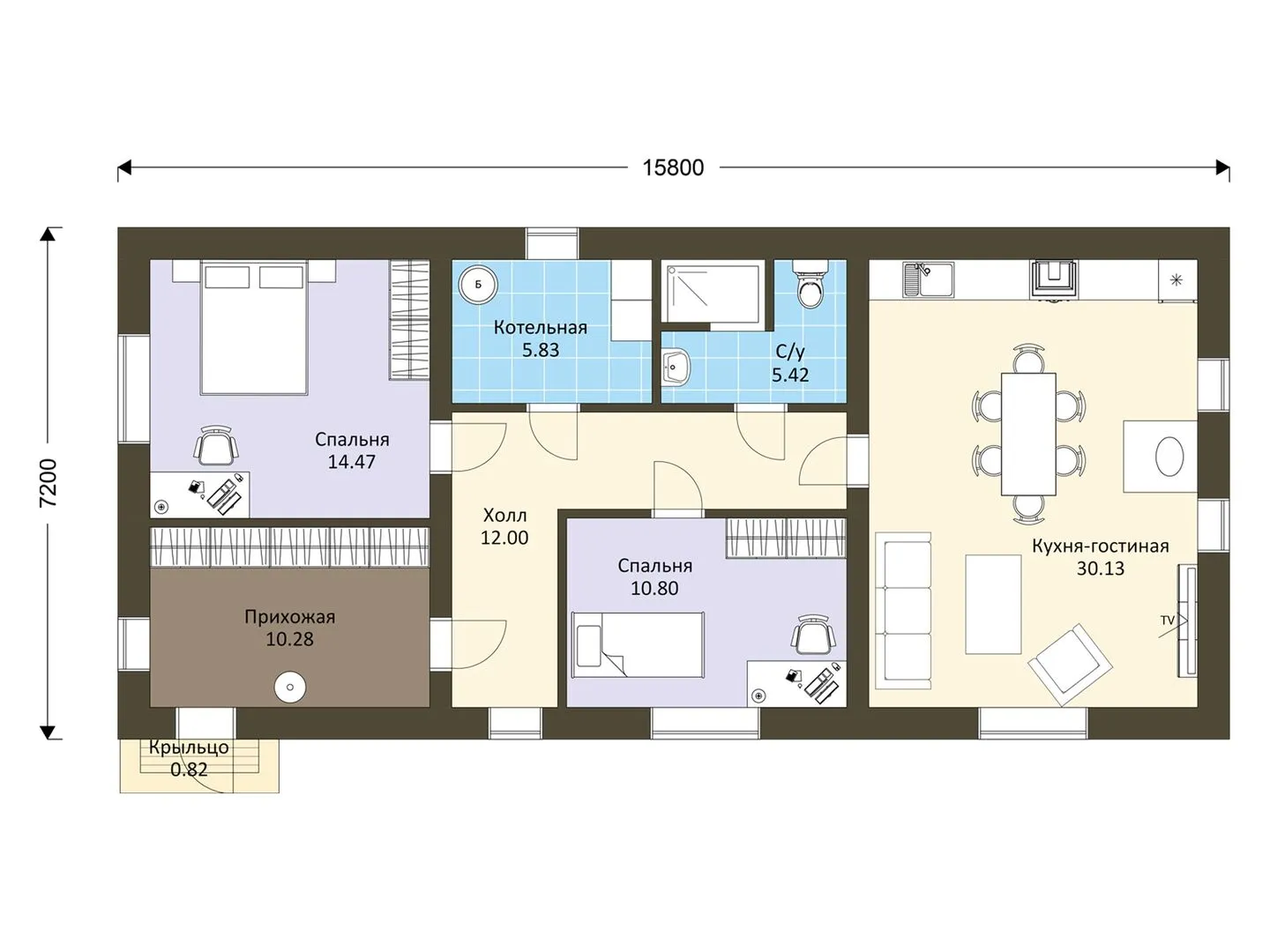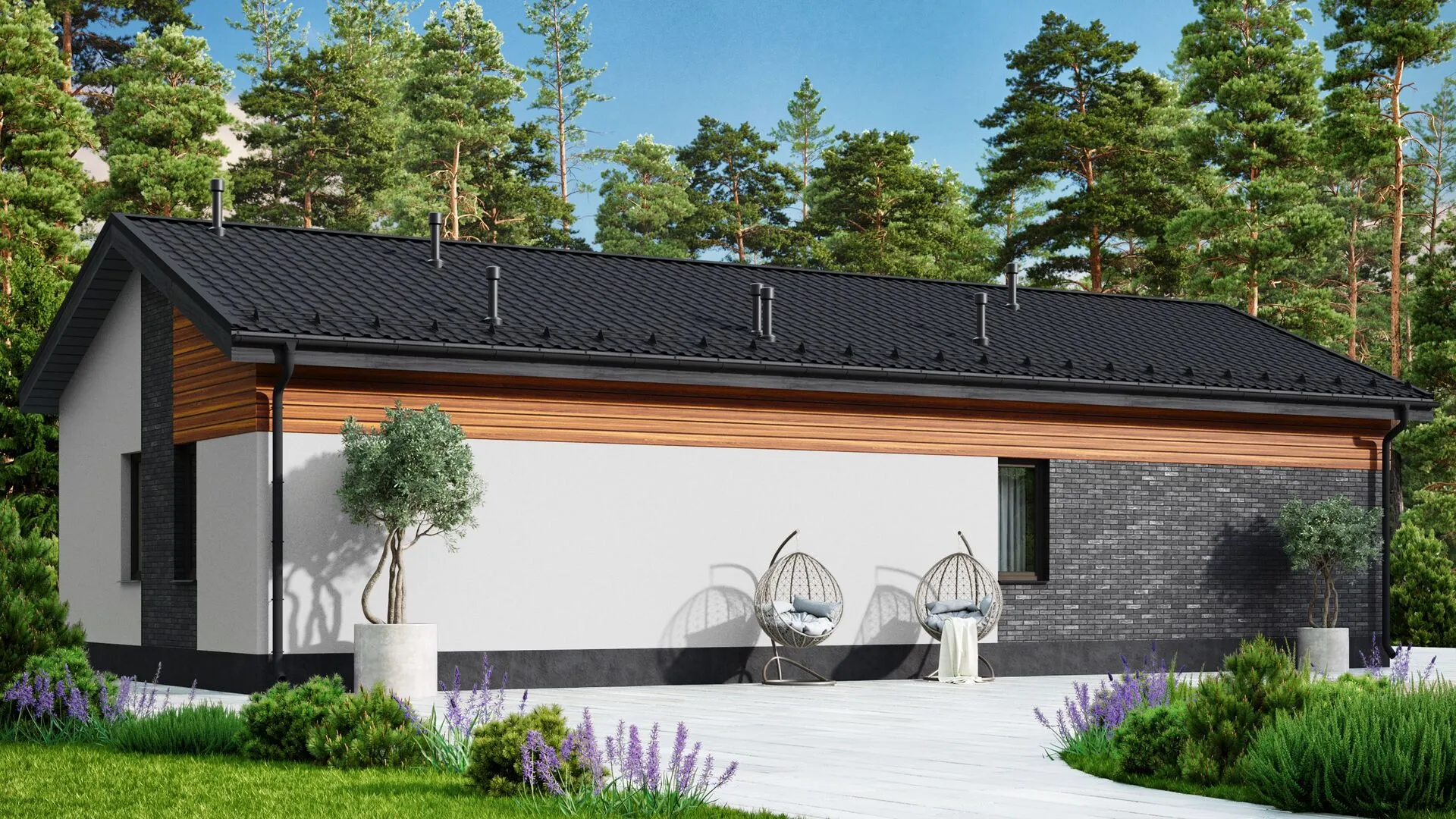 ДОМ СП‑123 GD — это уютное одноэтажное убежище классической эстетики, которое поразит вас своей гармонией и практичностью. Сочетание традиционного фасада и качественных газобетонных блоков обеспечивает превосходную теплоизоляцию, создавая идеальные условия для круглогодичного проживания. Внутри просторные, светлые комнаты с аккуратной планировкой, позволяющей каждый день чувствовать себя как дома. Забудьте о лишних балконах или верандах — здесь главную роль играют спокойные, выдержанные линии архитектуры и простота ухода за помещением. Двускатная крыша и отсутствие подземных помещений делают это жильё не только эстетично, но и удобным в эксплуатации. Благодаря отсутствию прикреплённого гаража и крытой автостоянки вы легко управляете собственным пространством, сохраняя его чистыми и свободными от лишних деталей. Идеальное решение для тех, кто ценит простоту, комфорт и традиционный стиль без лишних затрат. Дом СП‑123 GD – ваш новый уголок уюта, где каждое утро начинается с легкой гармонии светлых окон и чистых стен, а вечер завершается спокойствием и уверенностью в надёжности выбранного дома.