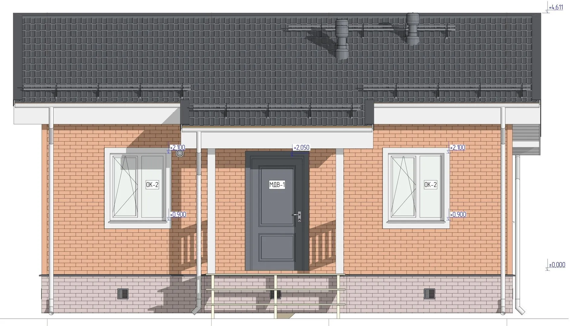 Одноэтажный дом с плоской крышей и тремя спальнями