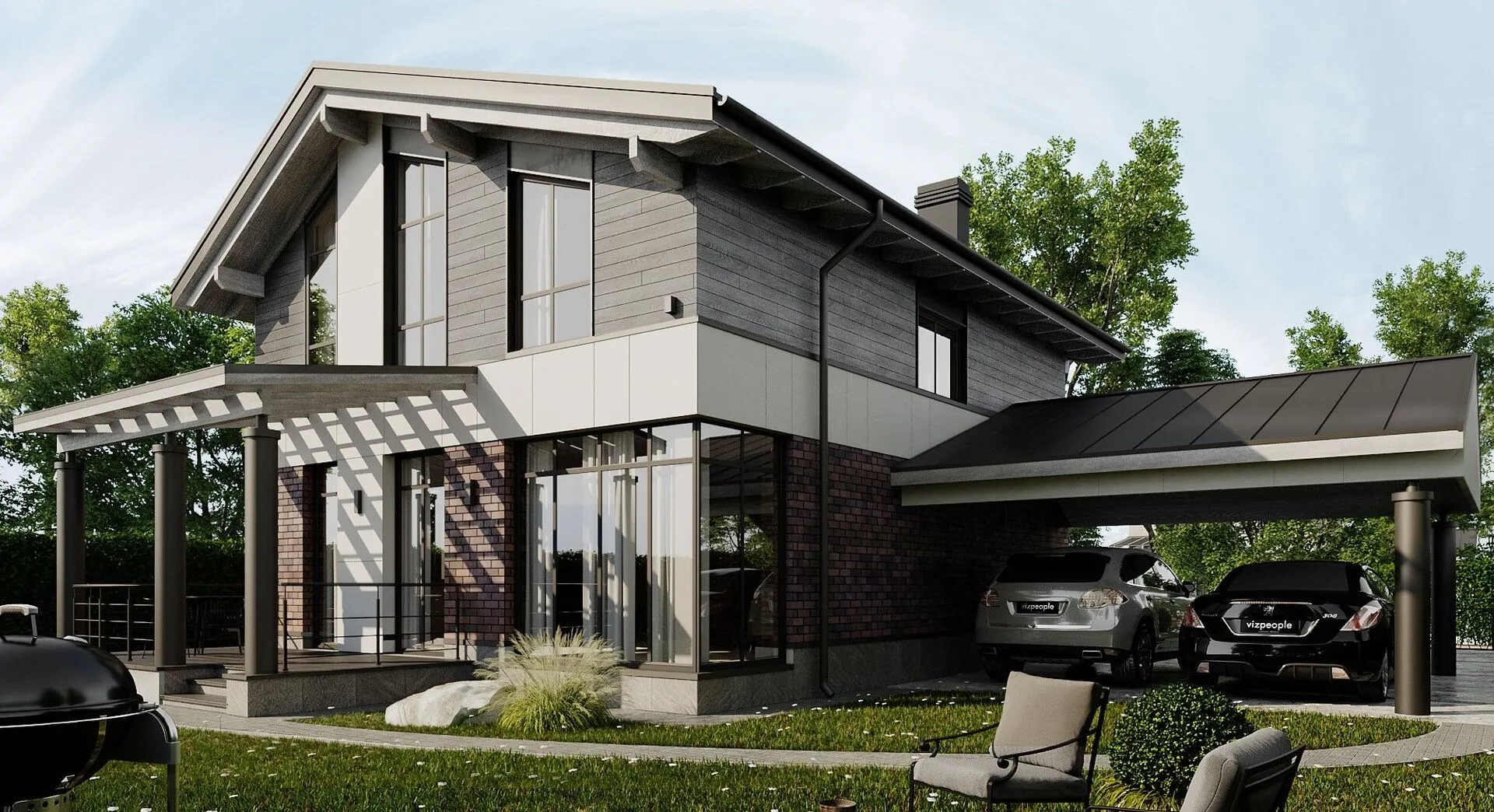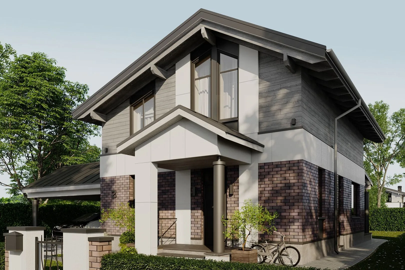Добро пожаловать в уютный двухэтажный шале площадью 150 м², где каждый уголок пронизан атмосферой тепла и уюта. Строгая глинечая кирпичная фасадная панель словно приветствует гостей, а двускатная крыша добавляет нотку эко‑шика и уединения. В течение всего года в этом доме всегда тепло и светло – настоящий дом для любой погоды. Шале с продуманной планировкой: открытые зоны, большие окна, обширная терраса, где можно насладиться ароматом свежего воздуха и видом на живописный уголок. Пристроенный гараж и крытая автостоянка гарантируют удобство и безопасность вашего автомобиля, а отсуствие балконов и веранд позволяет создать чистую, непрерывную панорамную картину. Этот дом создан для тех, кто ценит комфорт, качество и атмосферу семейного тепла. Здесь вы найдёте всё необходимое для круглогодичного проживания — от уютных спальных зон до функциональной кухни и просторной гостиной. Приезжайте и убедитесь сами: шале – это не просто жильё, а место, где воспоминания и мечты рождаются в каждом вдохе.