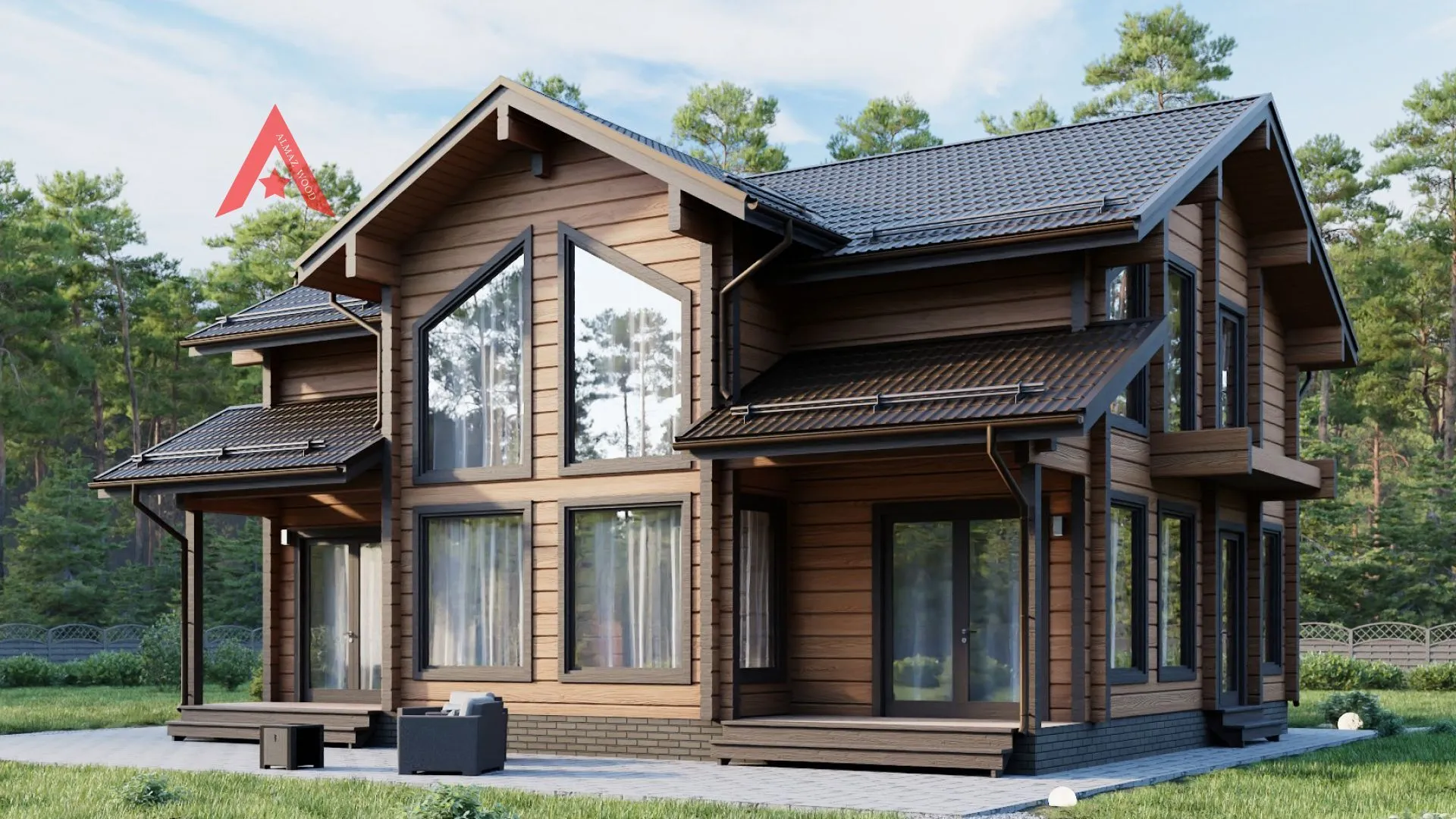 Строительство двухэтажных домовСтроительство домовСтроительство домов без гаражаСтроительство домов без чердакаСтроительство домов в стиле ШалеСтроительство домов для круглогодичного проживанияСтроительство домов из клеённого брусаСтроительство домов с балконом или лоджиейСтроительство домов с верандойСтроительство домов с двускатной крышейСтроительство домов с террасой