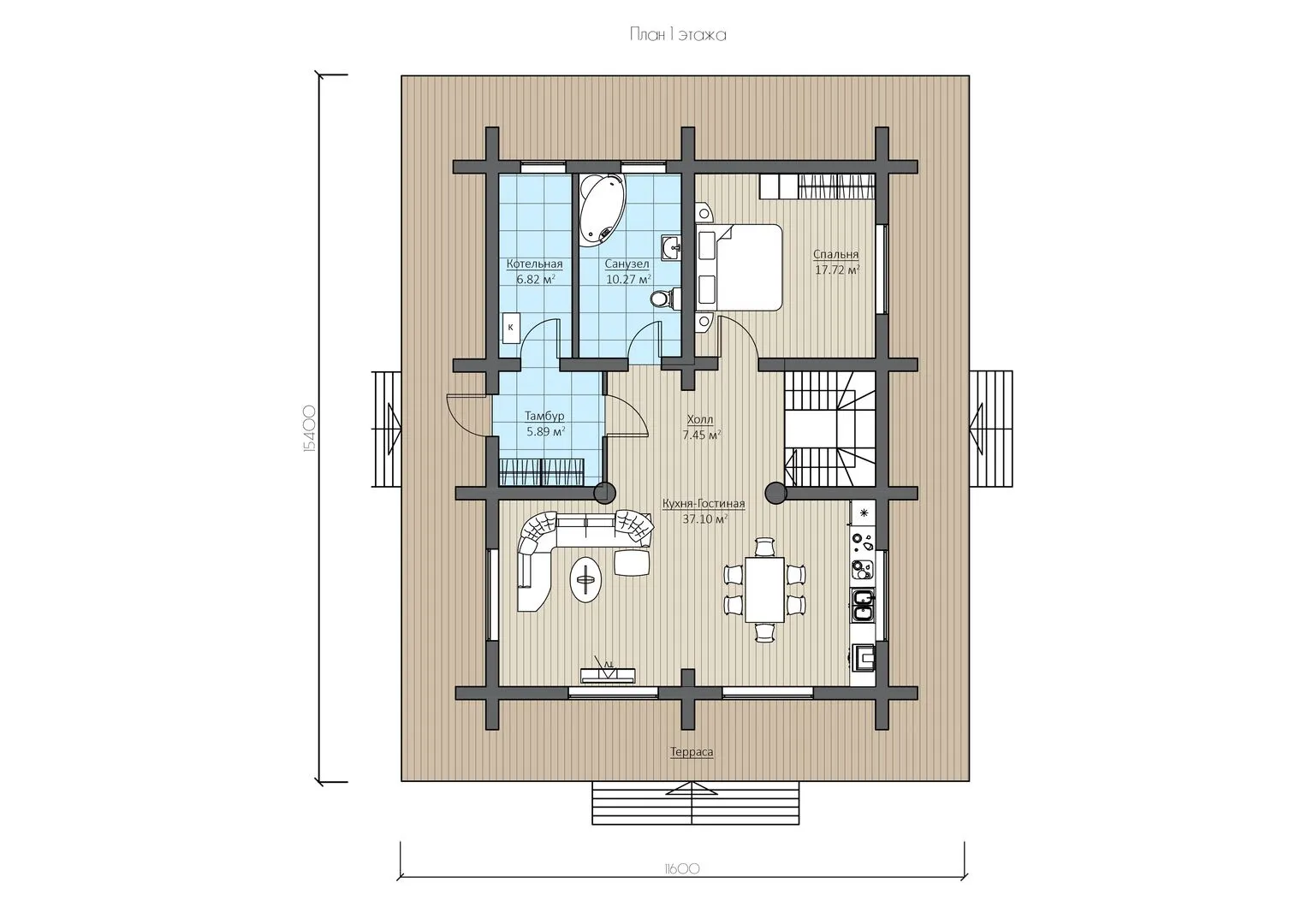 Добро пожаловать в наш уютный деревянный дом «Углич» – настоящий уголок природы, где каждый квадратный метр пропитан теплом и душевной атмосферой. Эта двухэтажная резиденция создана для тех, кто ценит комфорт круглый год и хочет провести здесь неповторимые моменты в гармонии с природой. Архитектурный стиль, вдохновленный дизайном северных американских и канадских коттеджей, добавляет проекту элегантности и простоты, создавая ощущение уюта и одновременно эко‑современности. Главную особенность дома – его срубовые стены, которые не только красиво выглядят, но и обеспечивают теплоизоляцию, сохраняя мягкую температуру вне зависимости от сезона. Двускатная крыша придает фасаду классическую привлекательность, а просторное чердачное помещение дарит возможность воплотить в жизнь любые идеи: от уютного рабочего уголка до зимнего хранилища. Внутри – открытая планировка с просторными комнатами, где естественный свет проникнет с панорамных окон, подчеркивая простоту и функциональность. На выходе – большая терраса, где можно наслаждаться вечерними закатами, отдыхать после долгого дня или проводить дружеские встречи на свежем воздухе. «Углич» – идеальное место для тех, кто мечтает о спокойствии, соединенном с природой, но не хочет отказываться от комфорта дома. Здесь вы найдёте баланс между традицией и современностью, а каждый день станет новым шагом к созданию воспоминаний, которые останутся с вами надолго. Окунитесь в атмосферу тепла и уюта, выберите именно этот дом, и пусть его тепло согревает ваш дом целыми поколениями.