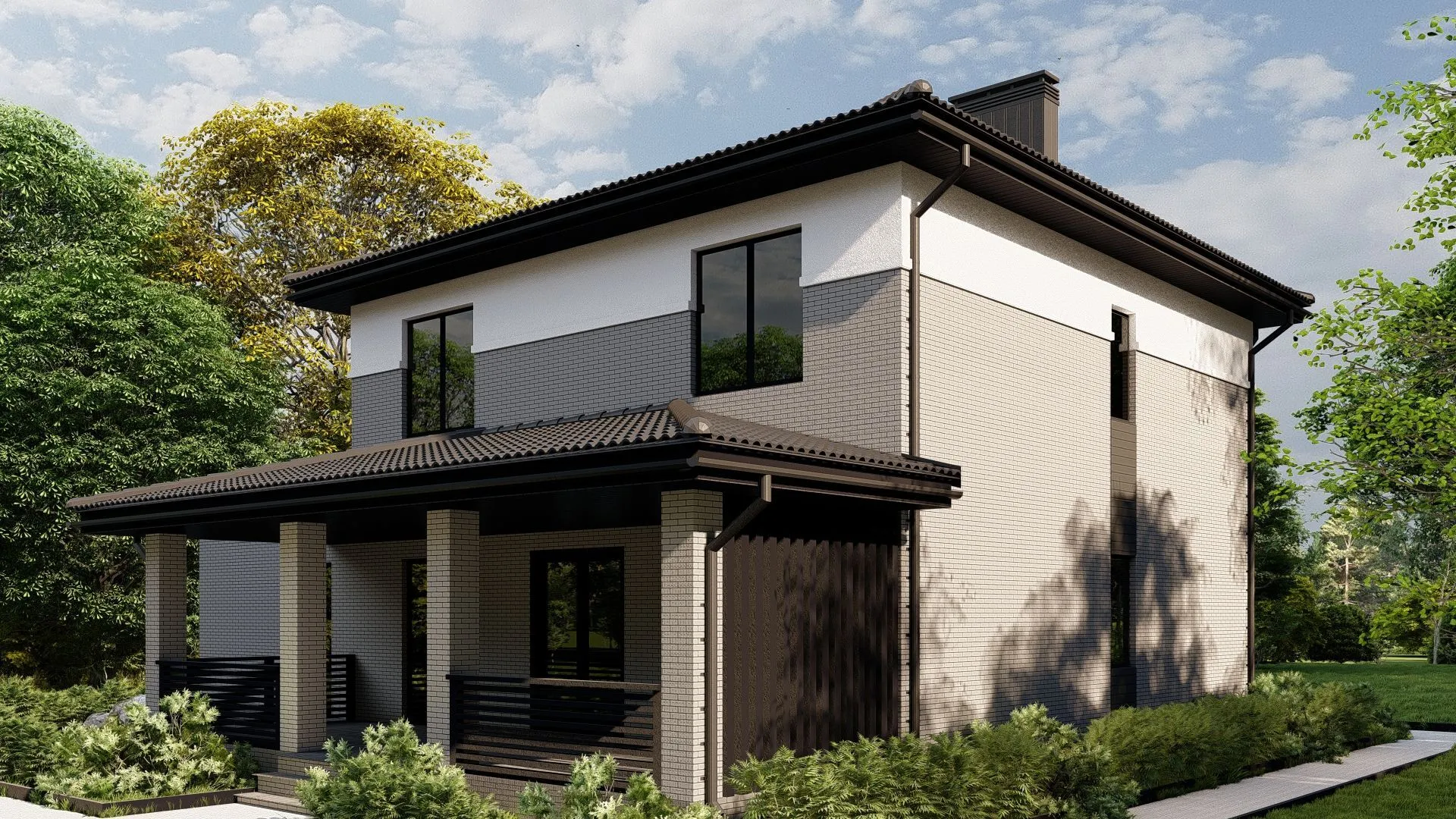 Вас ждет исключительный уют и практичность: двухэтажный дом G‑300 в европейском стиле, созданный для комфортной жизни круглый год. Просторные открытые планировки, большие окна, благородные материалы и аккуратное отделения придают дому эстетическую привлекательность и позволяют ему вписаться в любой облик придорожного пейзажа. Огромный прицепной гараж даёт возможность хранить автотранспорт и инструменты в защищённом пространстве, а наличие крытой автостоянки избавляет от лишней заботы по поводу погоды и безопасности. Без балконов и веранд наш дом дарит вам непрерывный внутренний поток естественного света и благоприятное микроклиматическое пространство, где вы можете полностью расслабиться в уютном интерьере без лишних посторонних звуков и ветров. Четырехскатная (вальмовая) крыша в сочетании с прочными керамическими блоками обеспечивает долговременную защиту от атмосферных воздействий, а терраса на крыше добавляет дополнительный уютный уголок для отдыха и общения с природой. Отлично подходит тем, кто ценит элегантность, надежность и практичность, и готов открыть двери своему новому гнезду в гармонии с окружающей средой.
