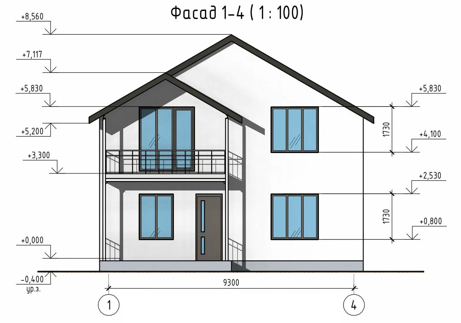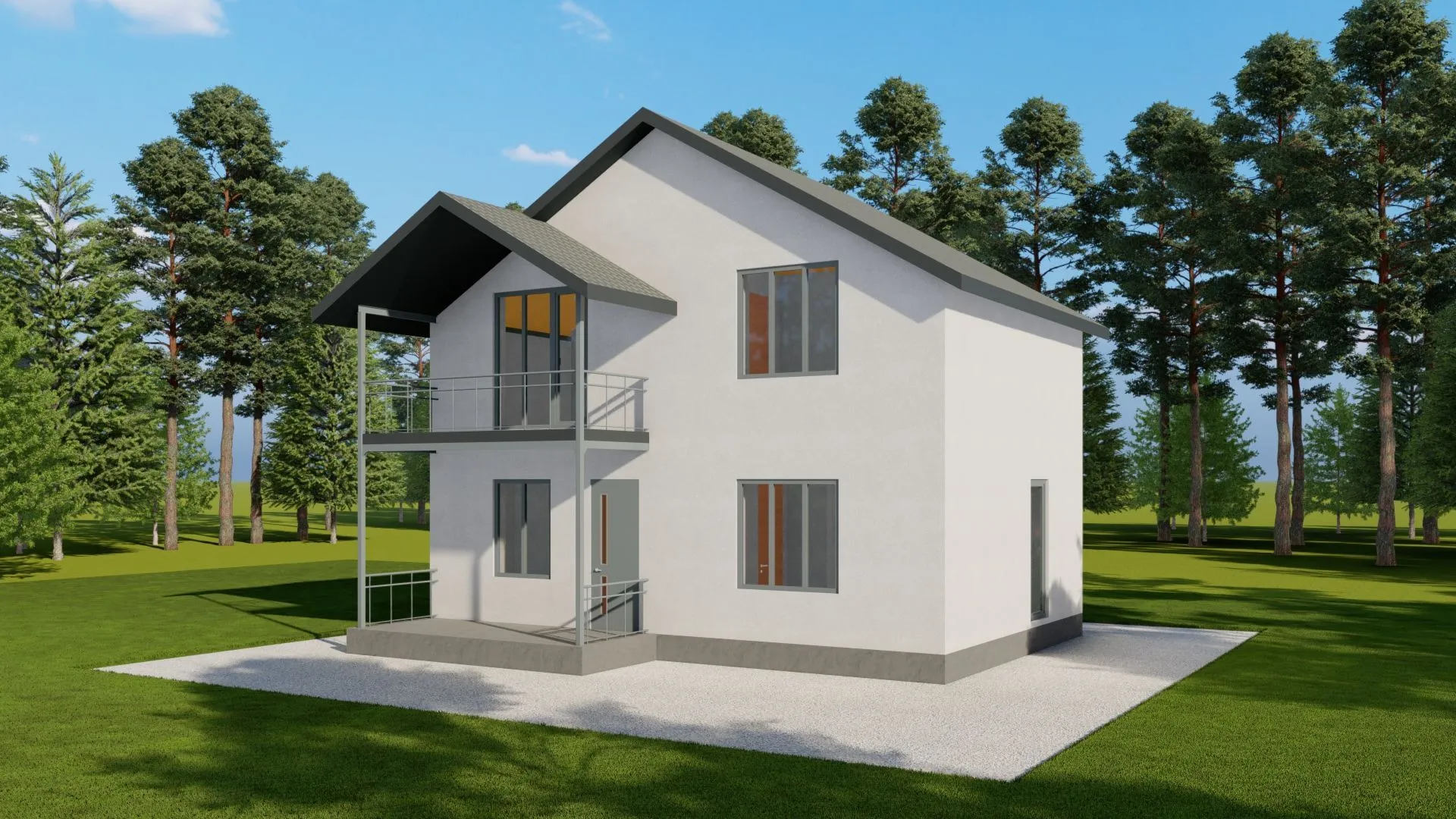Двухэтажный дом из арболита с балконом