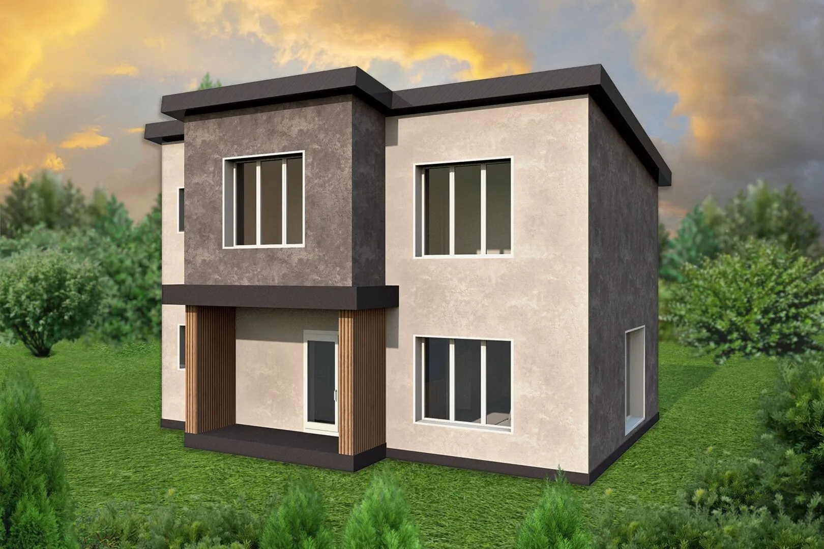 Заказать конусльтацию по:Двухэтажный дом из арболита- 101 м2,- 4 спальни, 2 с.у.-Ельдигино