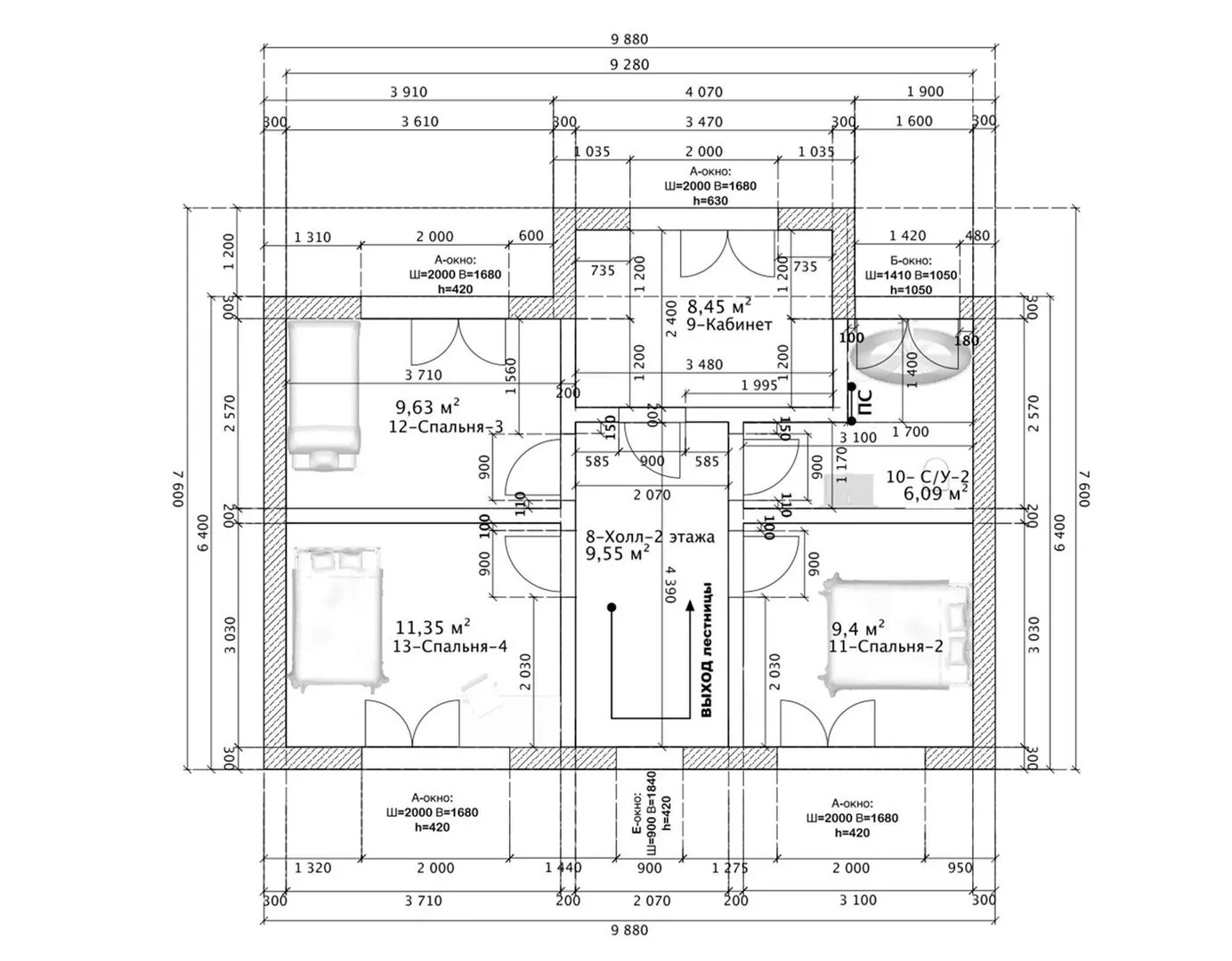 Двухэтажный дом из арболита- 101 м2,- 4 спальни, 2 с.у.-Ельдигино