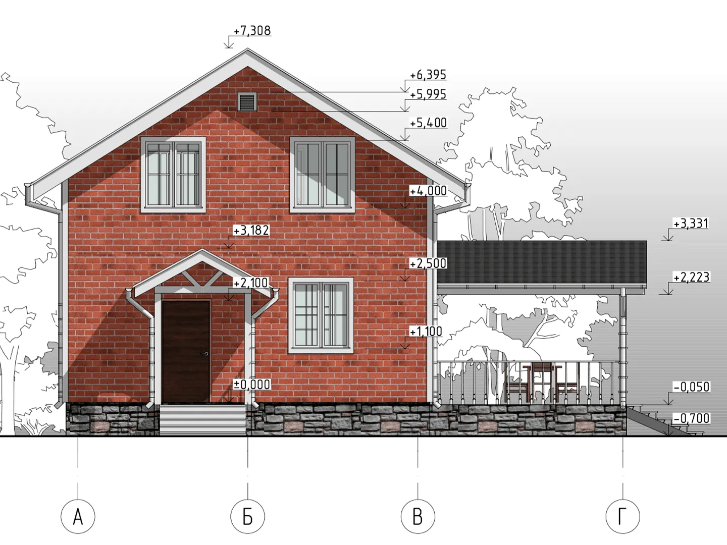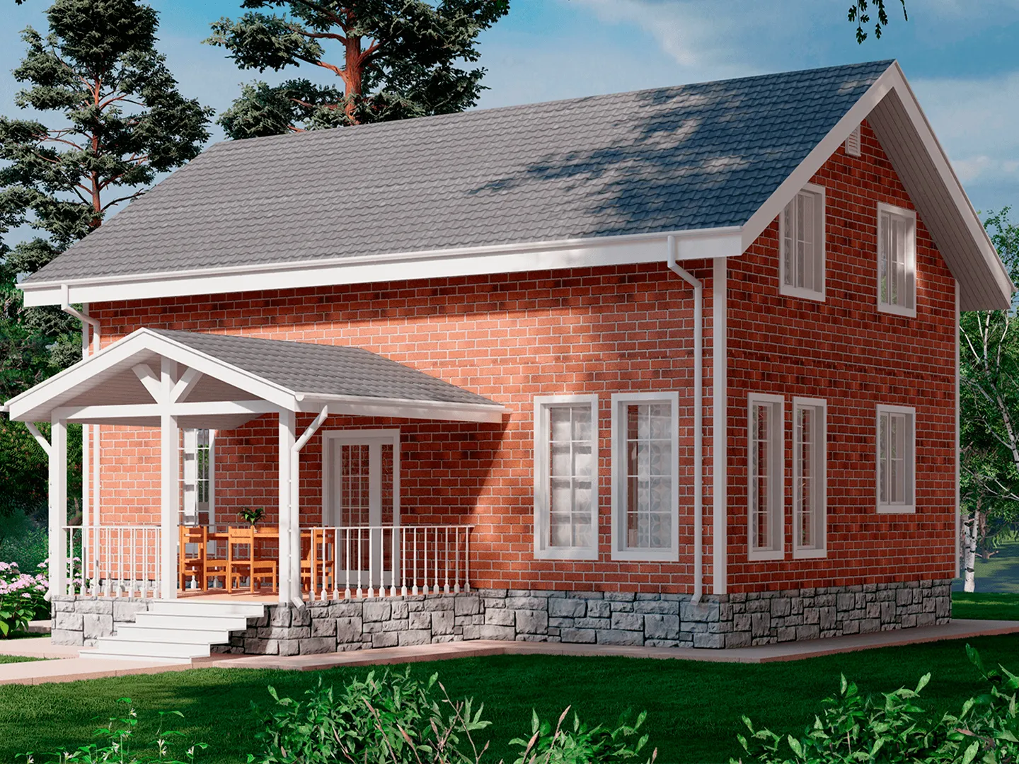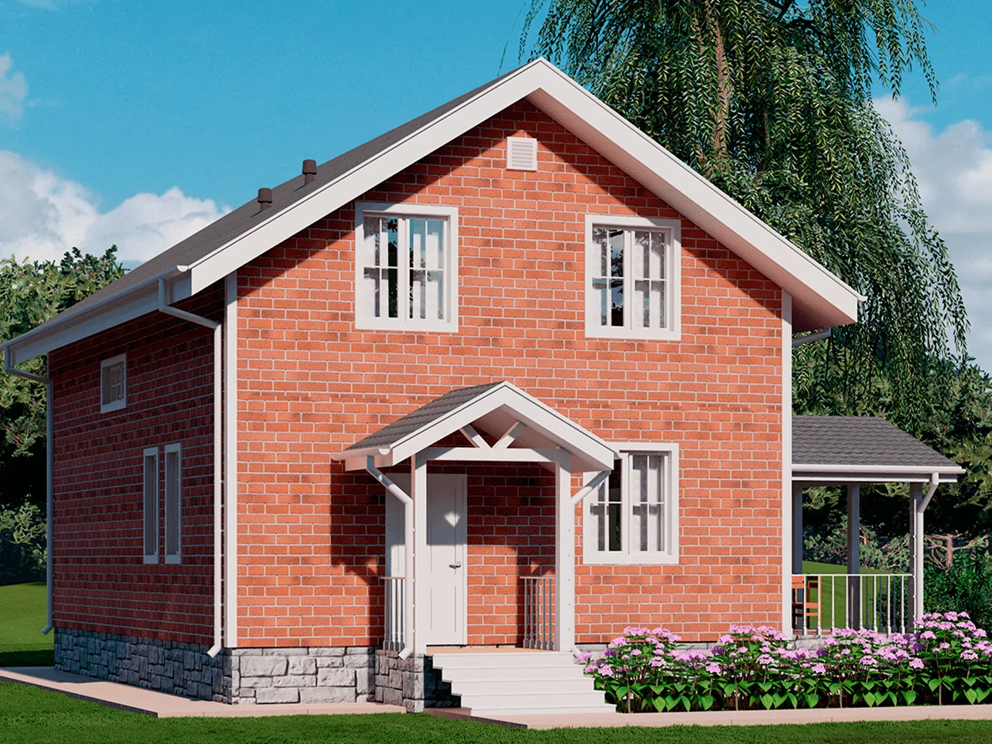 Двухэтажный дом КД-33 с террасой и крыльцом