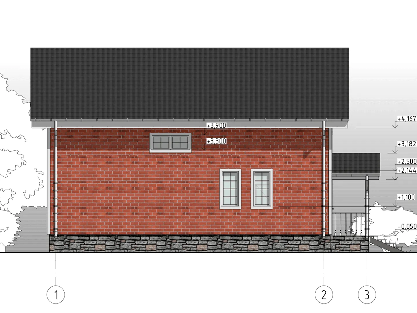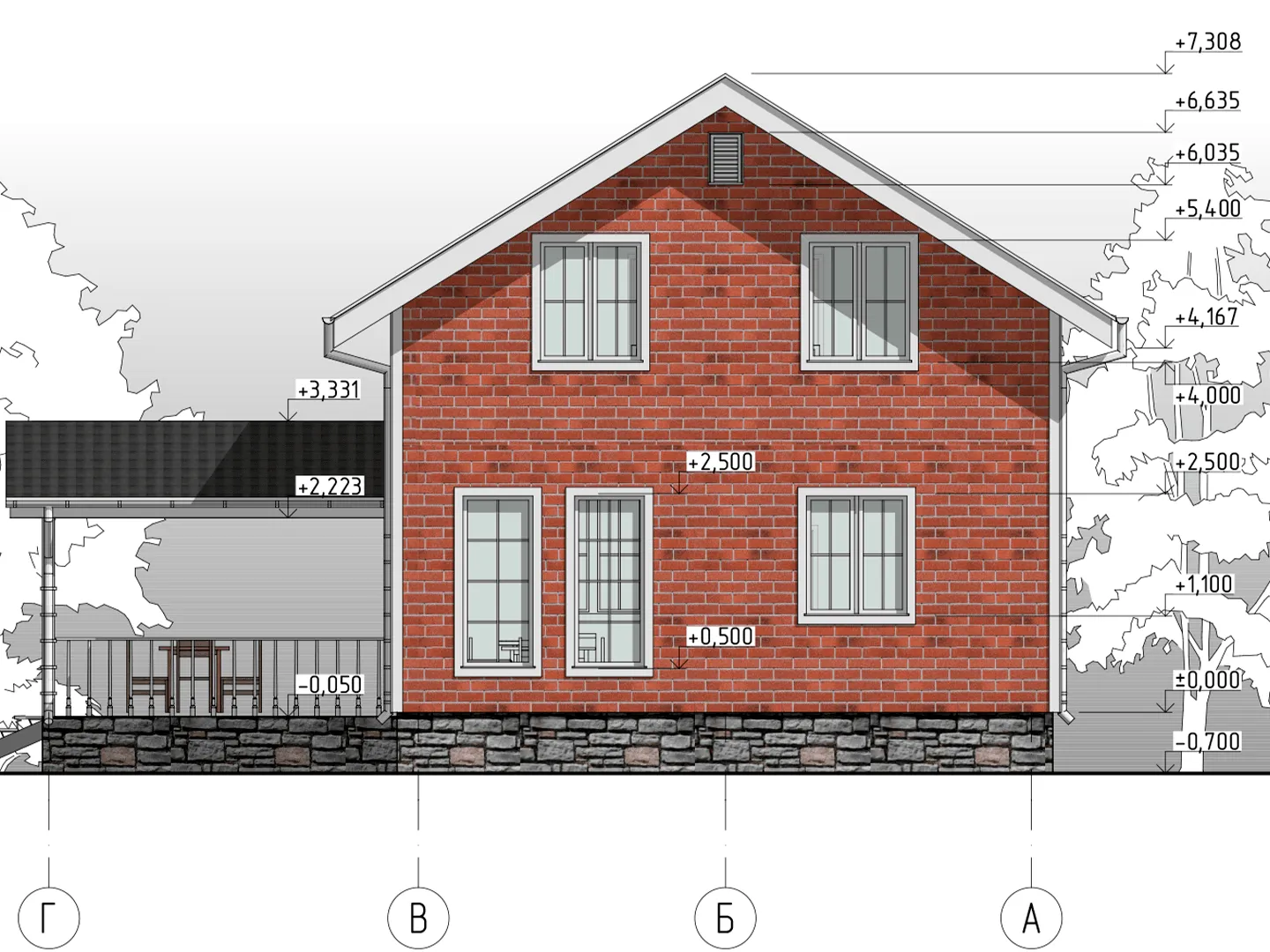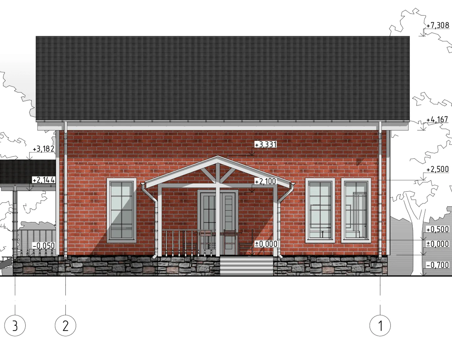 Двухэтажный дом КД-33 с террасой и крыльцом