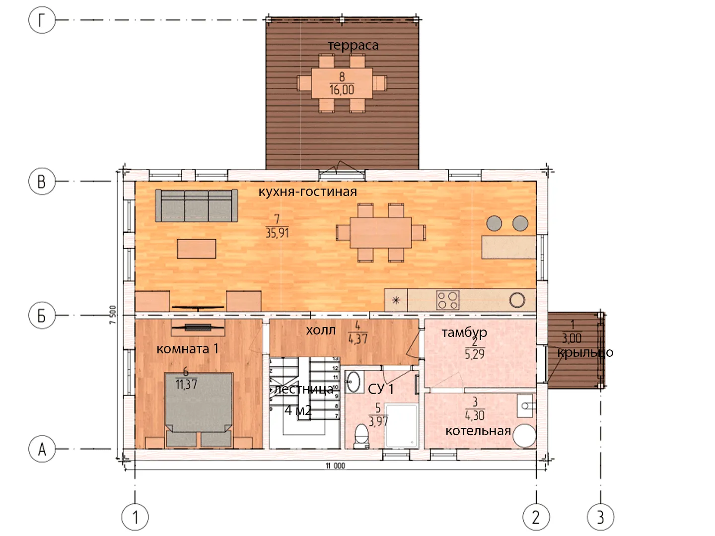 Заказать конусльтацию по:Двухэтажный дом КД-33 с террасой и крыльцом