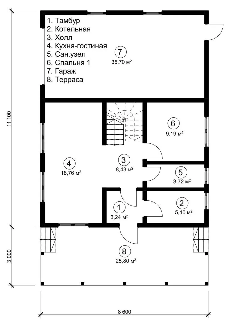 Заказать конусльтацию по:Двухэтажный дом с гаражом 114-23КД