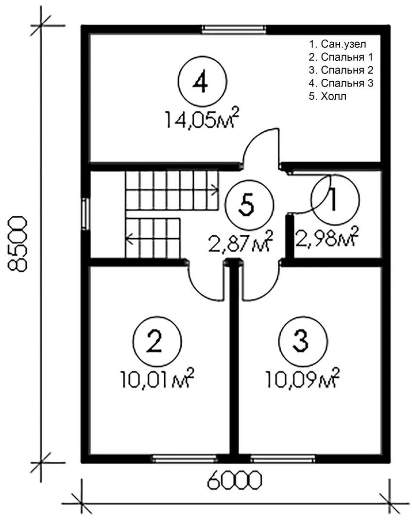Двухэтажный дом с мезонином. Проект 65-22КД.