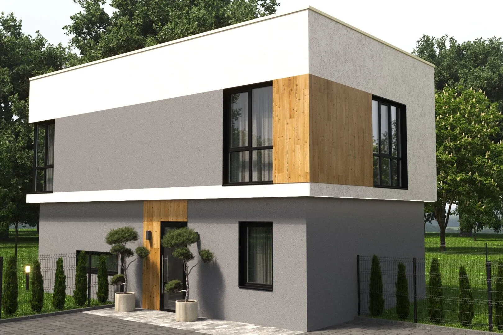 Двухэтажный дом с плоской кровлей W