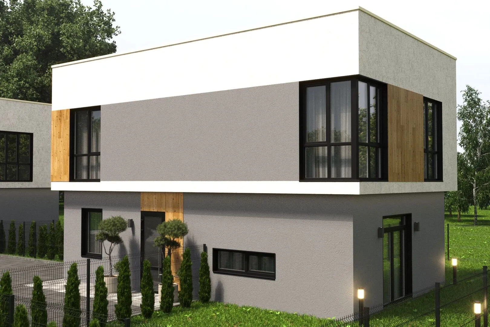 Двухэтажный дом с плоской кровлей M