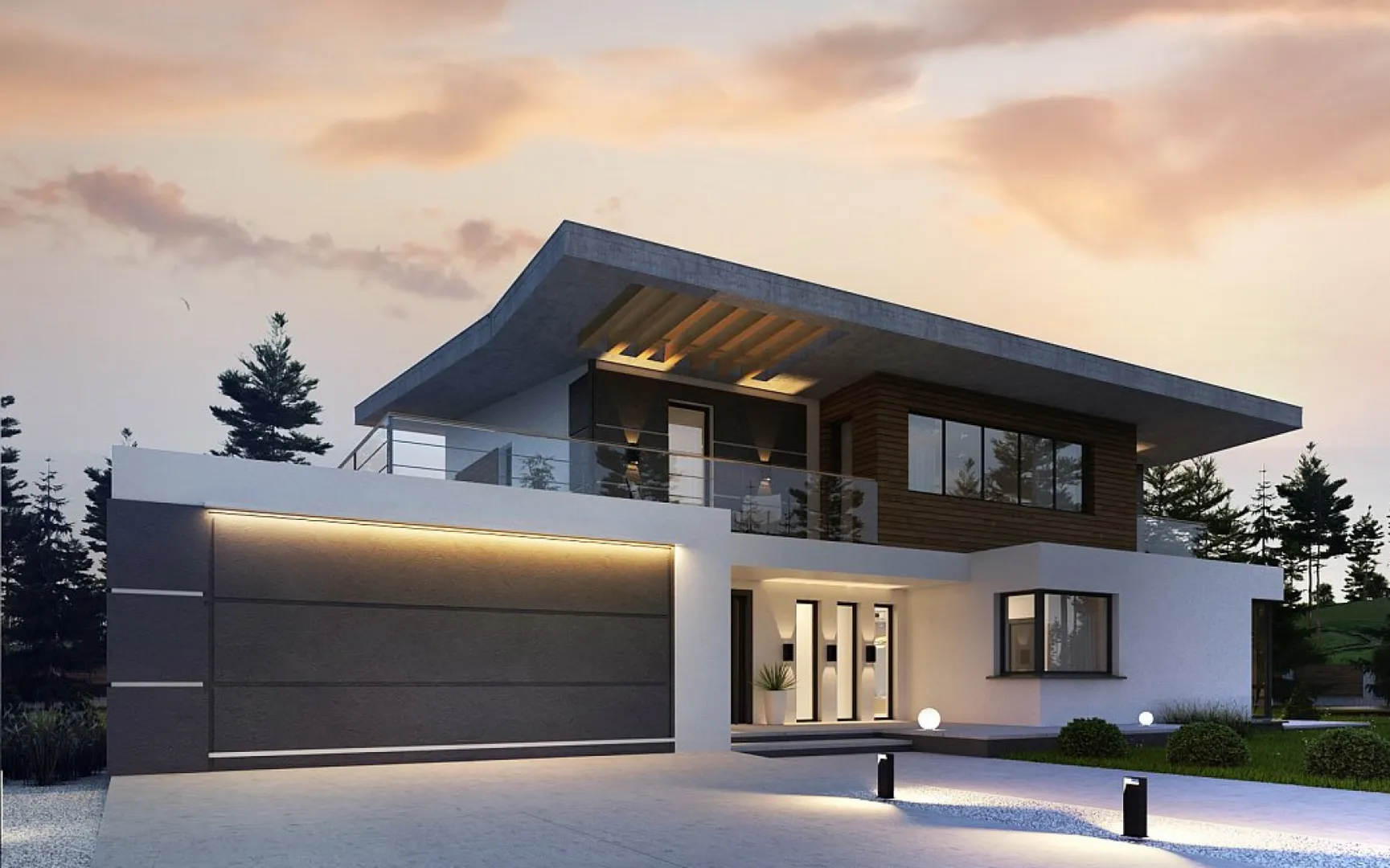 Двухэтажный дом с верхней террасой и большим гаражом S3-278 (Zx22)