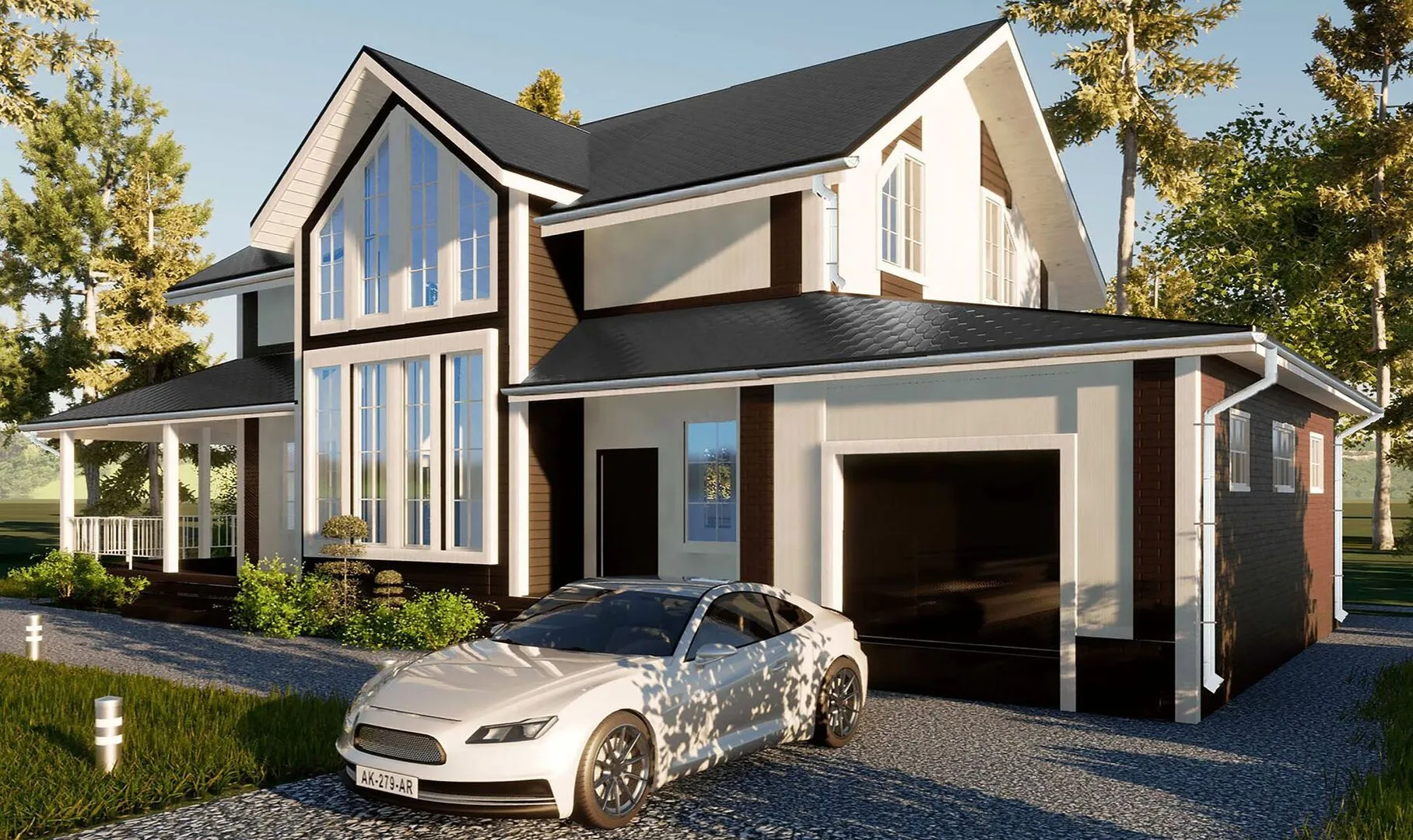 Заказать конусльтацию по:Двухэтажный дом со вторым светом, террасой и гаражом.