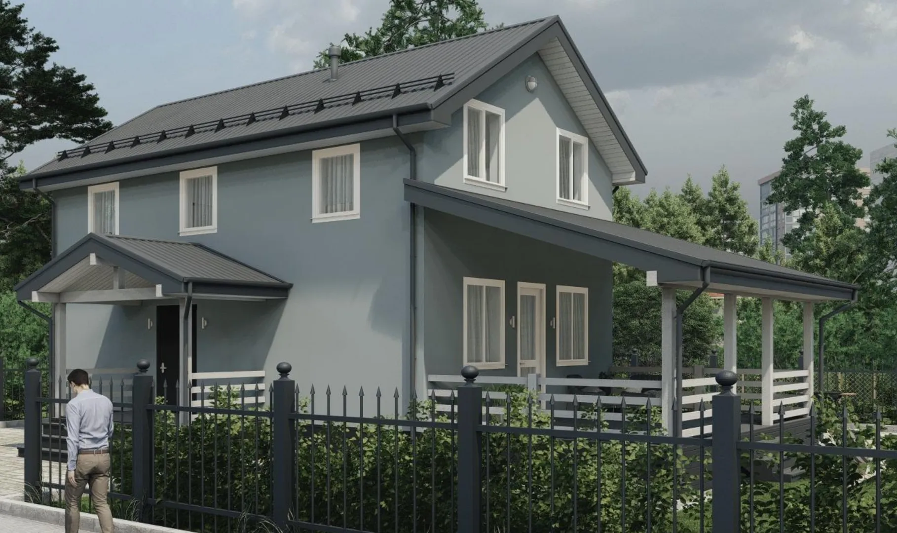 Сердце этого уютного двухэтажного дома — его гармоничное сочетание классической элегантности и современного удобства. Здесь каждый уголок создан для тихого, но насыщенного жизни, а просторные комнаты наполняют дом светом и теплом круглый год. Изысканный деревянный каркас придаёт структуре надёжность и природную теплоизоляторность, а двойная кровля, выполненная в классическом стиле, подчёркивает его элегантность и защищает от непогоды. Откройте для себя свободу и простоту: просторная терраса приглашает к семейным угощениям и вечерним беседам под звёздами. Отсутствие приёмных площадей и гаража позволяет ввести в дизайн чистоту линий и просторные балконные веранды, которые в этом случае переосмысливаются в виде светлых, открытых площадок, создавая ощущение бесконечного пространства. Благодаря сочетанию традиционного стиля с современными материалами, этот дом станет идеальным убежищем для тех, кто ценит комфорт, классические формы и уют в каждом дне.