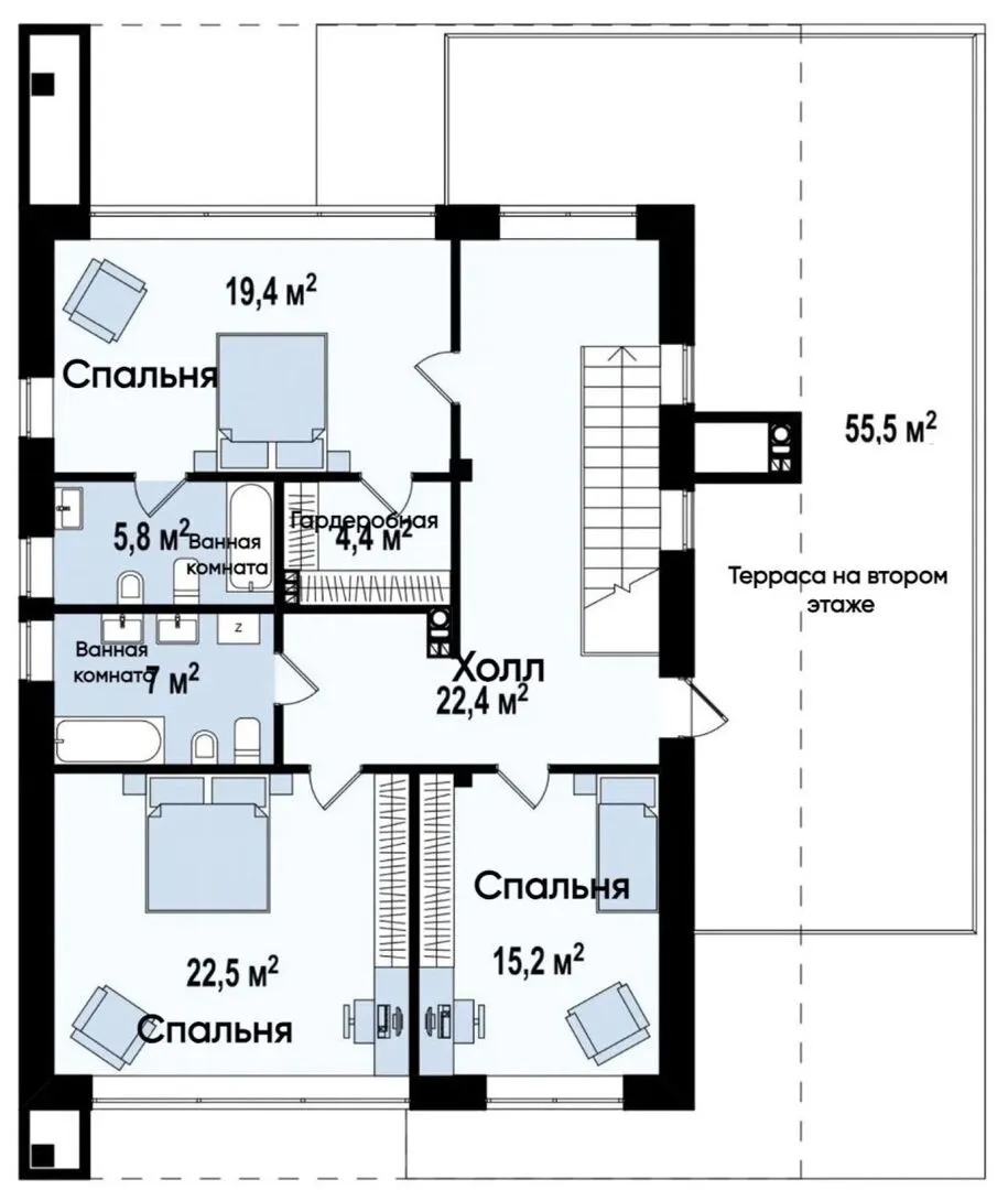 Заказать конусльтацию по:Двухэтажный дом в стиле хай-тек с террасами S3-236-1 (Zx123)