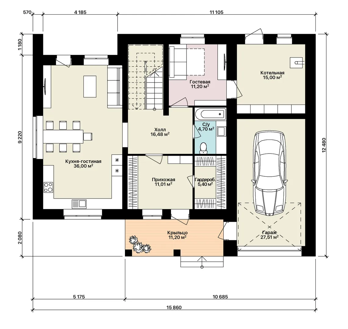 Загородный дом «Баланс» площадью застройки 75м2