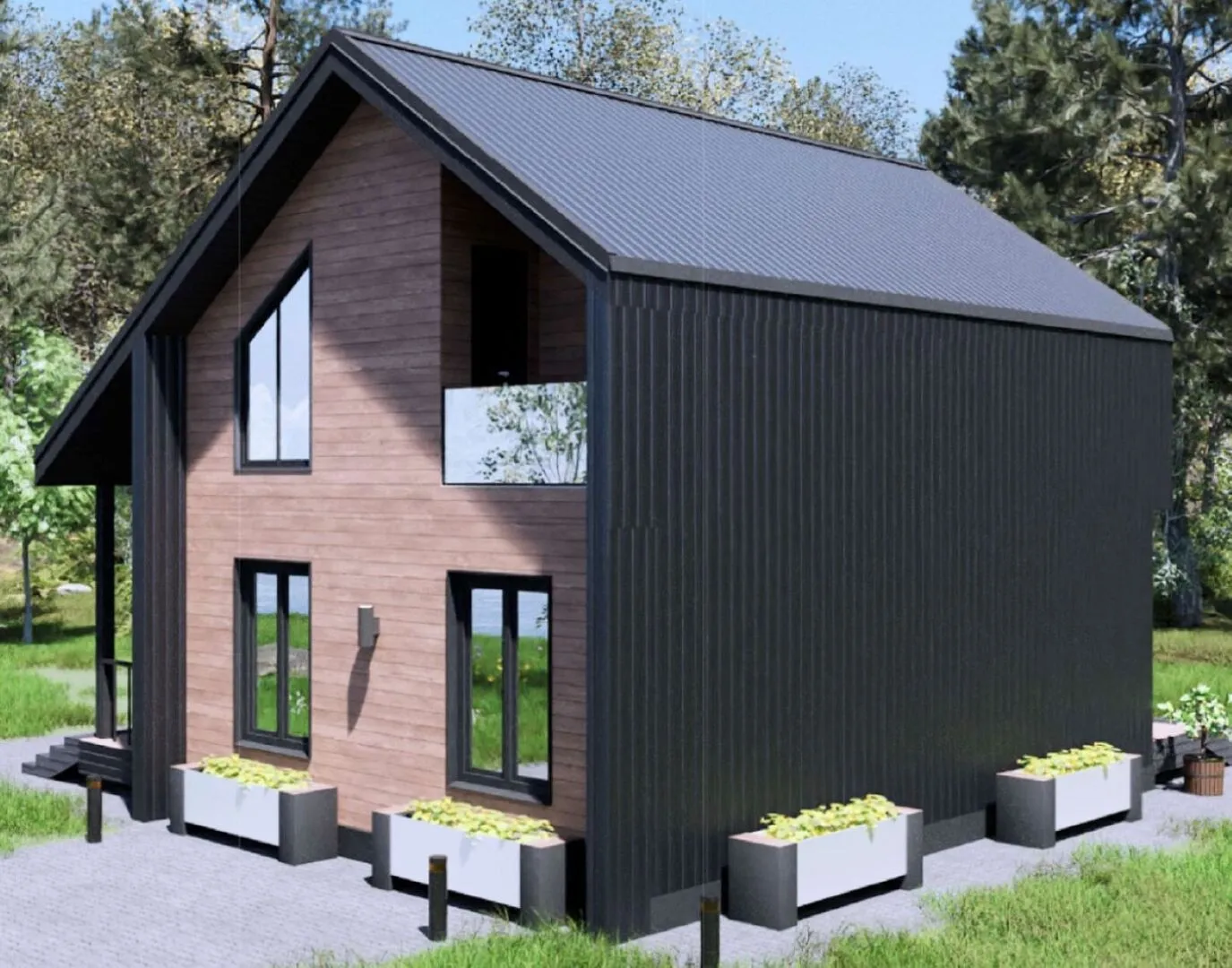 Ваш новый дом — это настоящая обитель уюта и современного комфорта, воплощающая в себе гармоничное сочетание европейской элегантности и практичности каркасно‑панельной технологии. Двухэтажный «БС‑136» создан для круглогодичного проживания: тепло сохраняется внутри благодаря изоляции и обшивке, а стильный, просторный план дарит ощущение простора и открытости. Вы будете наслаждаться каждым моментом в уютных помещениях, где мягкое освещение и качественные материалы делают атмосферу как дома, так и элегантной галереи. Особенности, которые выделяют этот дом, включают отдельный балкон и просторную террасу — идеальные места для завтрака под рассветом или вечера с друзьями. Стильный европейский внешний вид подчеркивает двускатную крышу, а отсутствие пристроенного гаража и крытой стоянки делает пространство более свободным и открытым, создавая ощущение лёгкости и простора. Этот дом не просто жильё, а приглашение к жизни в гармонии с природой и стилем, где каждый элемент продуман до мелочей, чтобы вы могли полностью погрузиться в комфорт и гармонию вашего дома.