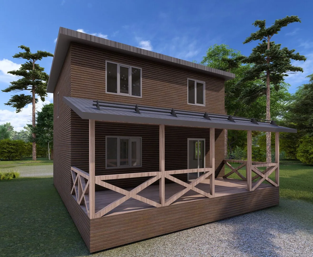 Сомкнув в себе элегантную классическую эстетику и современные решения, наш двухэтажный дом **Н‑1** предстает как настоящий уголок уюта и комфорта. Сочетая строгую линию фасада с изящным четырехскатным (вальмовым) кованым черепичным покрытием, он выглядит как истинный шедевр в любой архитектурной гамме. Внутри каждый квадратный метр продуман до мелочей: просторные коридоры, светлые комнаты и теплая атмосфера создают идеальные условия для круглогодичного проживания. Дом построен на прочных SIP‑панелях, которые гарантируют отличную тепло- и звукоизоляцию, а также устойчивость к климатическим колебаниям. Благодаря этому ваш дом будет жарким летом и тёплым зимой, а значит вы сможете наслаждаться комфортом без лишних расходов на отопление и кондиционирование. Внутреннее пространство открыто и воздушно, а отсутствие балконов и веранд не снижает его функциональности: просторная терраса стала идеальным решением для семейных пикников, вечерних ужинов и лёгкого отдыха на свежем воздухе. Внутренний план дома обеспечивает благоприятную атмосферу уюта и спокойствия: от уютных семейных комнат до удобной гостиной с камином. Вместо прицепленных гаражей, здесь предусмотрена крытая автостоянка, которая защитит ваш автомобиль от непогоды, а свободный фасад сохраняет эстетическую чистоту и открывает возможности для персонализации внешнего облика. Приготовьтесь к жизни, где классика встречает современность, а уют всегда рядом.