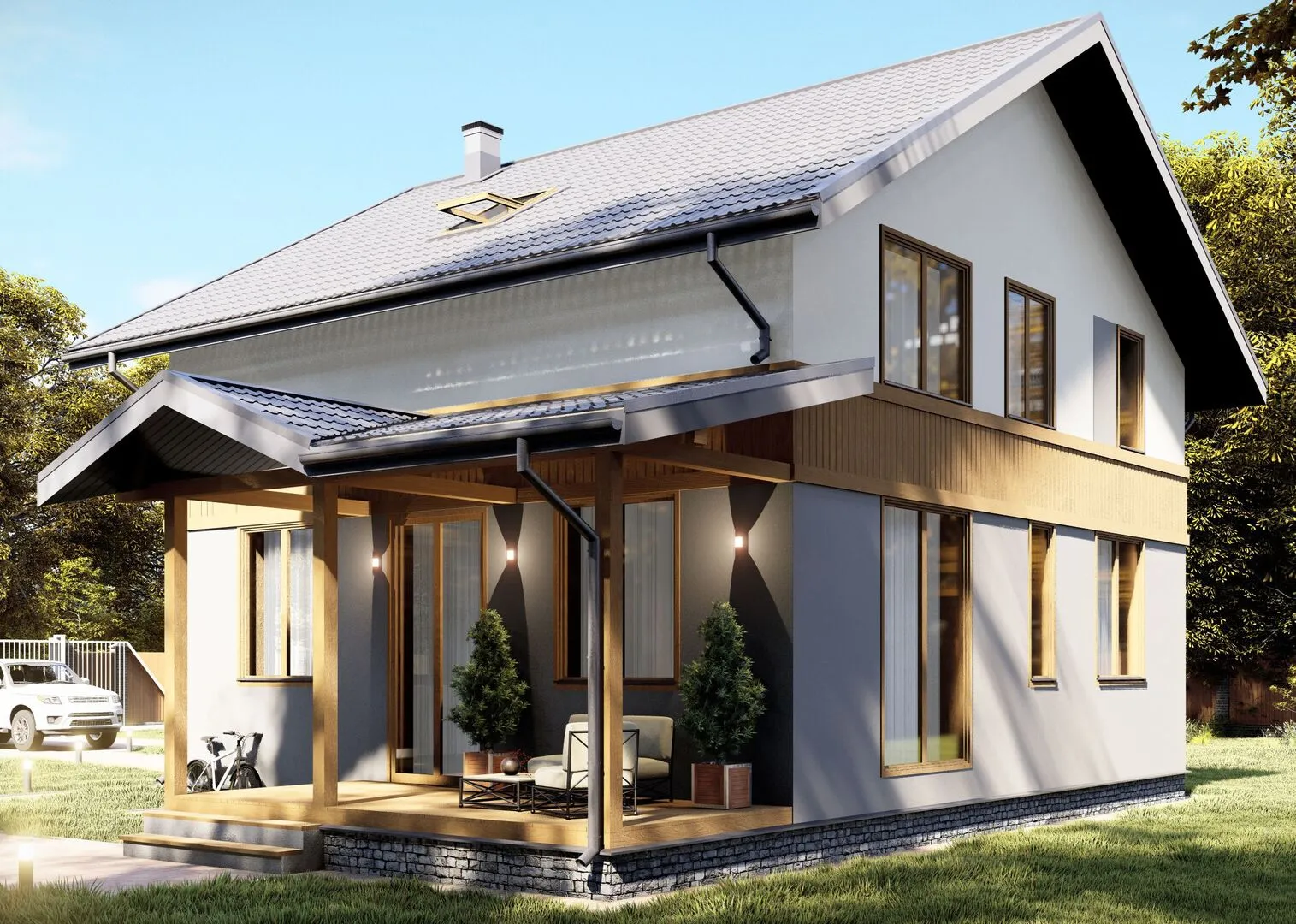 Представляем вашему вниманию двухэтажный дом SA‑150 – воплощение европейской элегантности и современного комфорта. В течение всего года он дарит уют и тепло, а его архитектура, выполненная в чистом европейском стиле, подчеркнет изысканность вашего образа жизни. Дом без балконов и веранд, но с просторной террасой, где каждый вечер можно провести в компании семьи или друзей, наслаждаясь свежим воздухом и панорамным видом на окрестности. Внешние стены из газобетонных блоков обеспечивают высокий уровень тепло- и звукоизоляции, а двускатная крыша придает дому благородный профиль, характерный для классических европейских построек. Благодаря продуманной планировке, каждая спальня и гостиная наполняется естественным светом, создавая ощущение простора и гармонии. Дом SA‑150 — идеальный выбор для тех, кто ценит уют, качество и стремится к жизни без компромиссов.