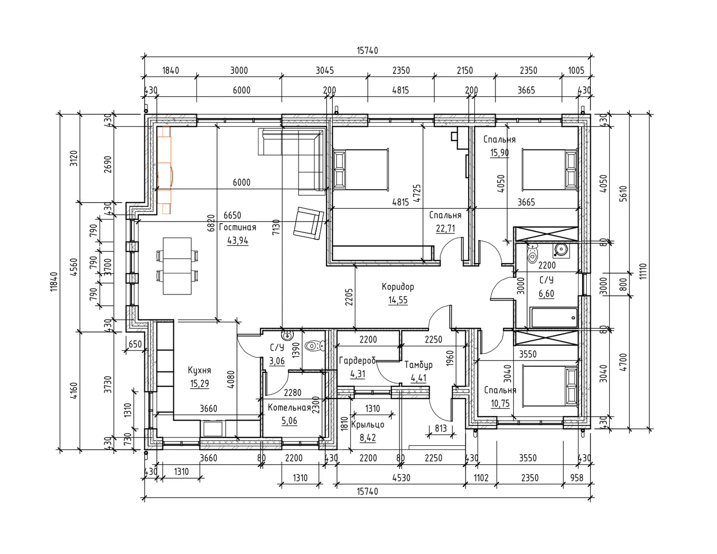 Одноэтажный дом Проект 3Р-П
