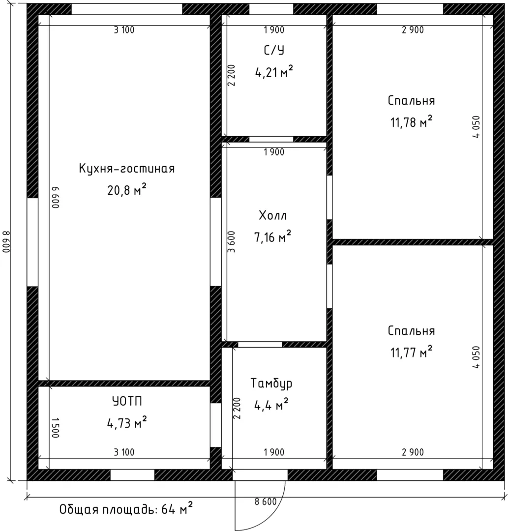 64 м2