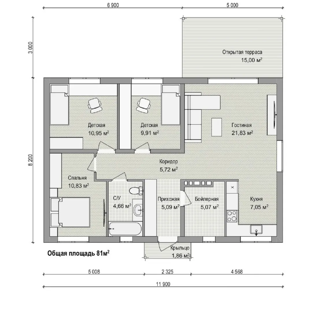 Площадь дома 96 м2