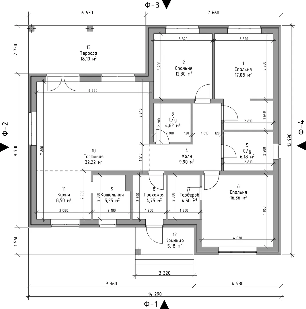 Одноэтажный жилой дом Зевс мини с крыльцом 93 кв.м