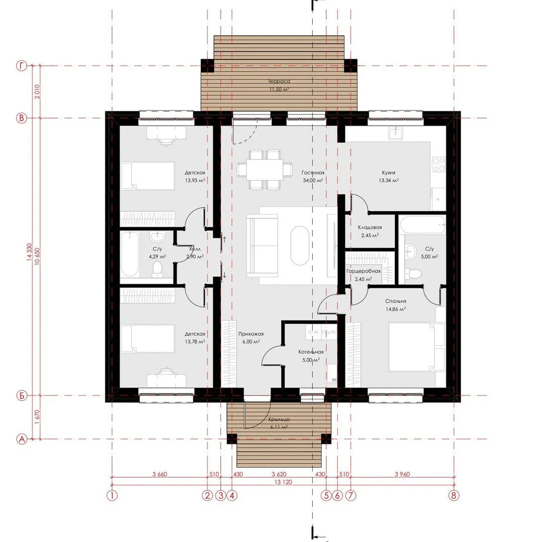 Площадь дома 129 м2
