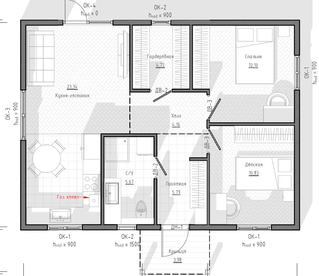 Одноэтажный дом с зоной второго света К-48 (2 спальни)