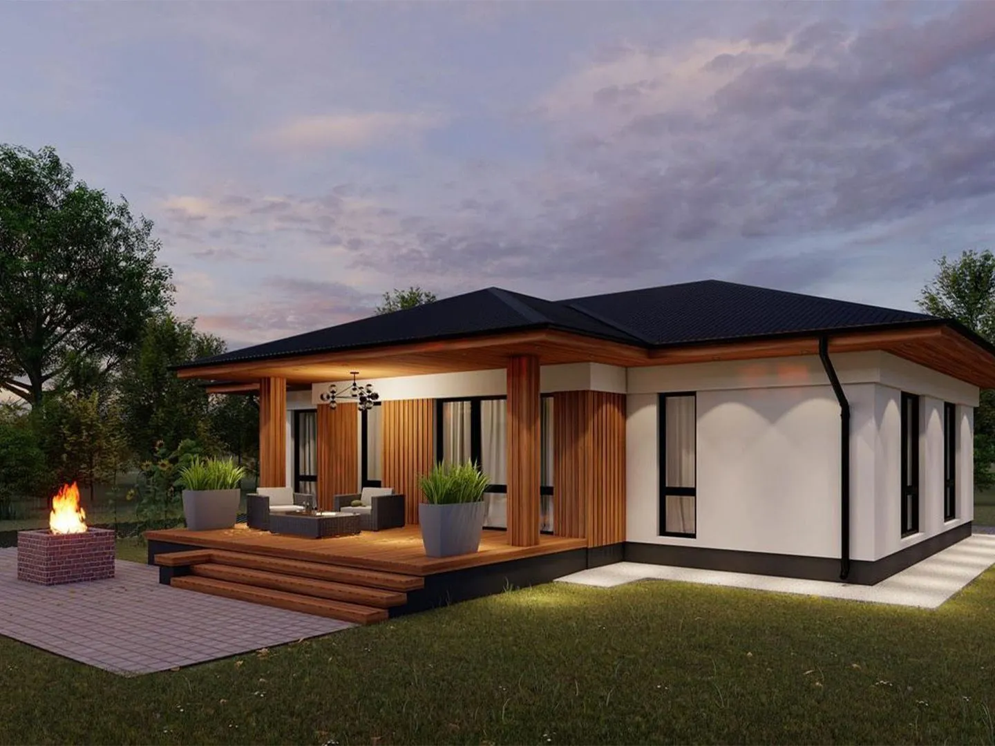 Одноэтажный дом в чёрном Стиле- номер 134