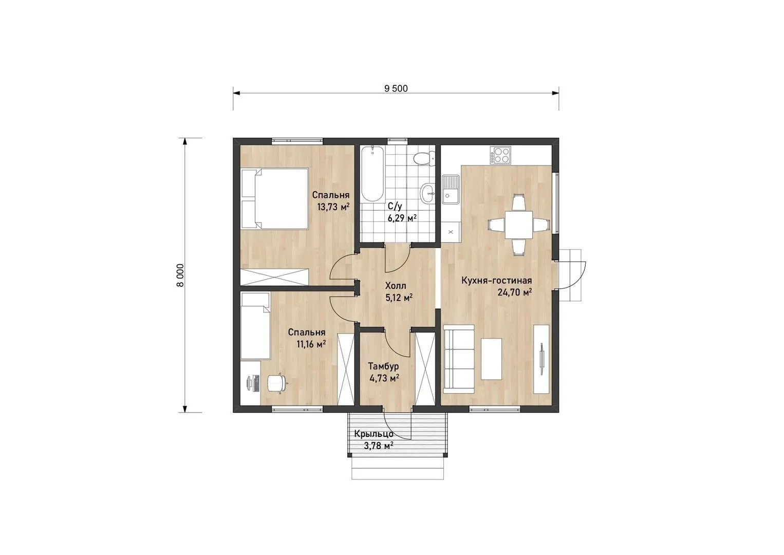 **ГАРДЕН** — это маленькое, но душевное решение для тех, кто ценит уют и простоту. Пришлось всего один надземный этаж, но благодаря продуманной, скандинавской планировке внутри появляется ощущение простора, света и гармонии. В квартире вы всегда сможете вести полноценную жизнь круглый год, ведь все помещения утеплены и защищены от перепадов температур, а просторные внутренние зоны дарят ощущение тёплого домашнего уюта. Деревянный каркас и простая двойная крышка создают неповторимую, тепло- и шумоизоляцию, которая позволяет чувствовать спокойствие даже в шумных местах. Без лишних балконов, веранд, гаражей и террас — всё, что действительно важно, собрано в компактном обрамлении, избавляя от забот о лишнем пространстве. При этом в доме предусмотрено чердачное помещение, которое легко переоборудовать под небольшую спальню, рабочий кабинет или уютный уголок для хобби. Выбирая `ГАРДЕН`, вы берёте в руки планарную, функциональную и непременно стильную квартиру, где каждый уголок наполнен чистой, скандинавской эстетикой, а практичность подчеркивается лаконичностью и продуманным внутренним движением. Это именно тот дом, который приглашает проводить время с близкими, наслаждаясь гармонией простых, но качественных решений.