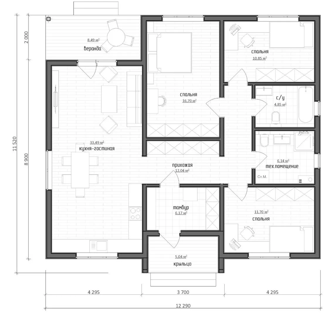 Добро пожаловать в уголок русской традиции, где классику встречает современные требования комфорта. Этот одноповерховый дом в стиле «Классика» – словно спокойный стяг зимней зимы, открывающийся каждому жильцу без лишних украшений. Деревянные каркасные стены, укрытые крепкой чётрёчно‑скапульной крышей, воссоздают атмосферу домашнего уюта в любой сезон, гарантируя круглогодичное проживание даже в самых резких климатических условиях. На выходе для гостей ждёт просторная веранда, где можно пить чай, наблюдать за движением ветра или просто отдыхать после дневных дел. Внутреннее пространство гармонично распределено, а большие окна пропускают свет, привнося в дом нотки лёгкости. Отсутствие балконов и чердачной площадки позволяет сохранить целостность фасада и усилить ощущение простора, а отсутствие прикрепленного гаража придаёт дому лаконичность и экономичность. Приглашаем узнать все детали лично! Оставьте заявку на сайте, и мы с радостью организуем вам визит – ваш идеальный дом в русской классике уже ждёт вашего решения.