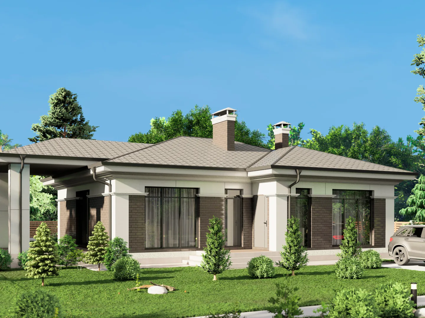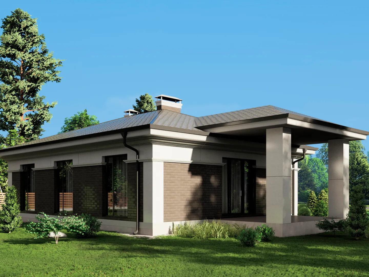 Одноэтажный жилой дом СВ-116 в декоративной штукатурке