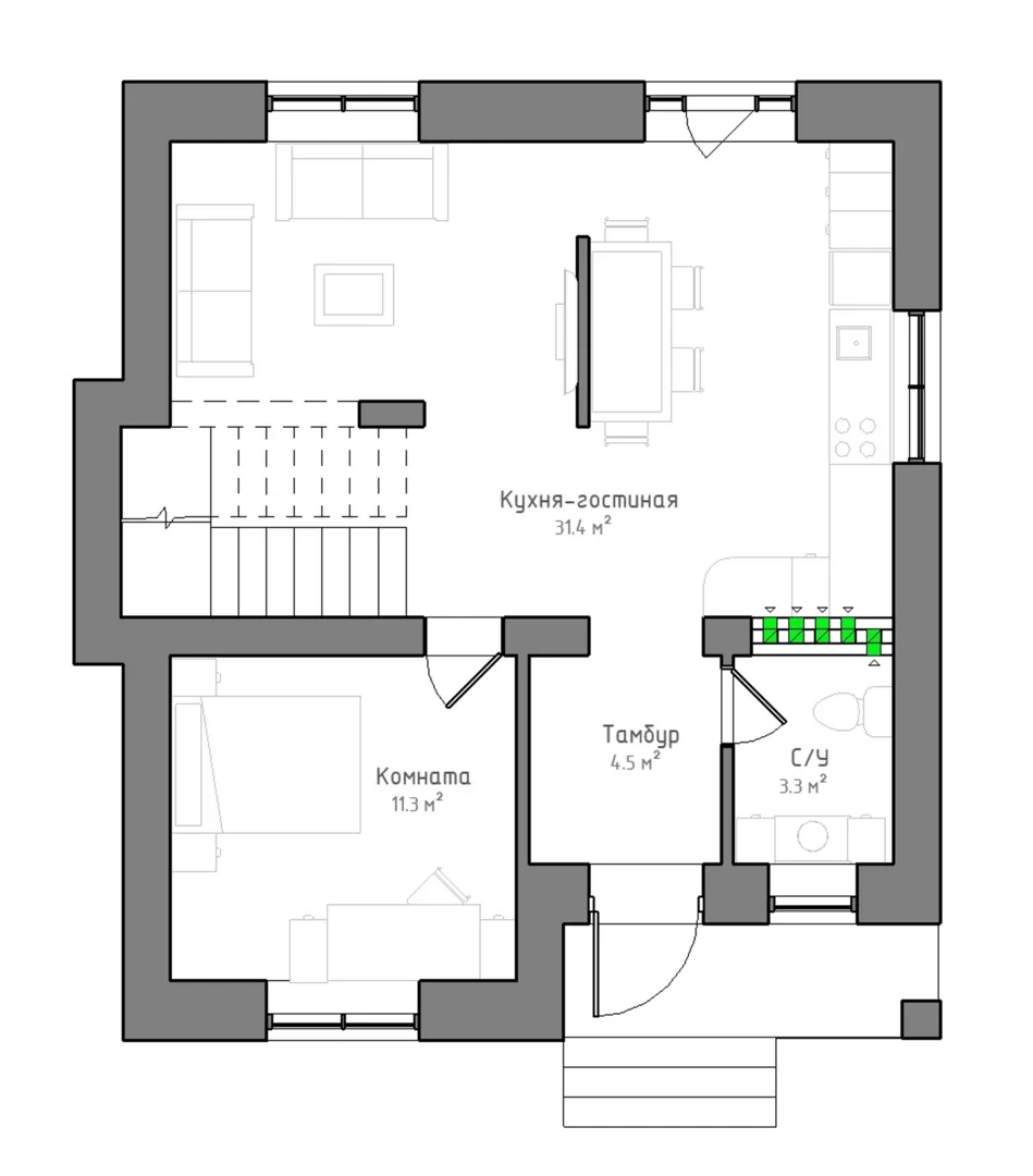 Совмещенная кухня-гостиная