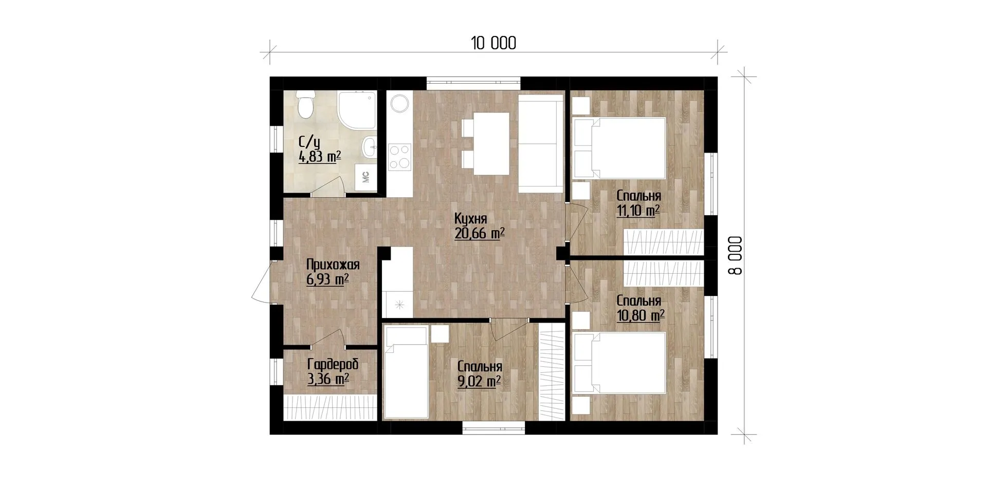 Площадь дома 66 м2