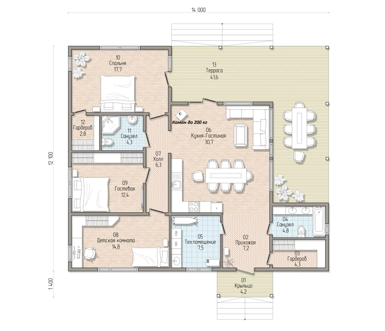 Загородный дом площадью 132,88 м2