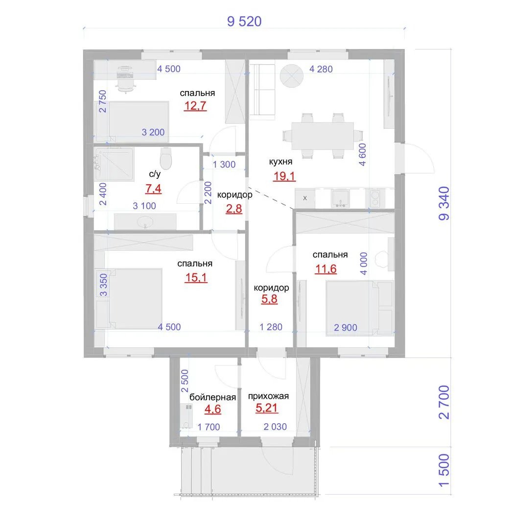 К‑0115 – это уютное одноэтажное жильё, созданное для тех, кто ценит комфорт и функциональность круглый год. Просторный планировочный дизайн подчёркнут американско‑канадским стилем, а надёжные газобетонные блоки гарантируют тепло и звуконепроницаемость. Крыша в классическом двускатном виде не только придаёт фасаду живописный вид, но и обеспечивает надёжную защиту от атмосферных нагрузок. Внутри вас ждёт светлая и открытая атмосфера: большие окна позволяют наслаждаться естественным освещением, а наличие чердачного помещения открывает возможности для создания уютных уголков – будь то дополнительная спальня, кабинет или детская площадка. Отсутствие балконов и веранд не ограничивает, а наоборот, подчеркивает элегантную простоту внешнего облика здания. Дом предназначен для комфортного круглогодичного проживания, где каждая деталь продумана до мелочей: от теплоизоляции до эстетического оформления фасада. Если вы ищете сочетание классической привлекательности и современной практичности, К‑0115 станет идеальным выбором.
