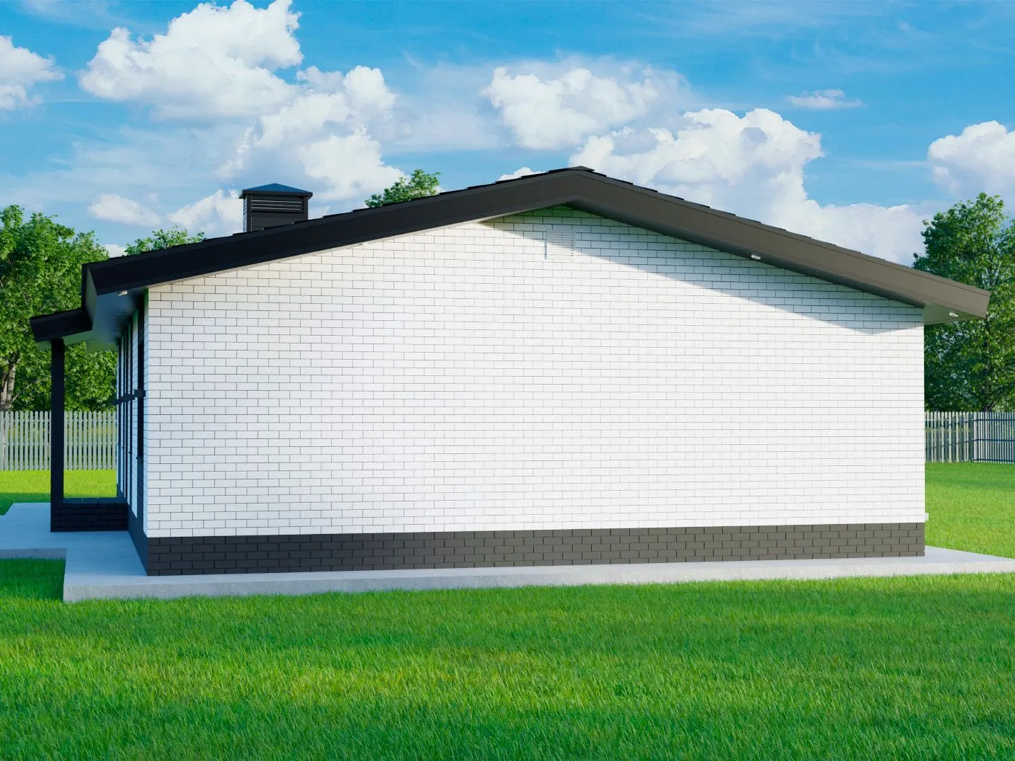 Уникальный одноэтажный дом «К 1‑103» воплощает идею спокойного европейского уюта, где каждый уголок пропитан гармонией и простотой. С обилием естественного света, открытая планировка внутри позволяет легко настроить пространство под любой образ жизни – от домашнего кинотеатра до элегантного гостевого зала. Гибкая стена из керамзитобетонных блоков придаёт конструкцию одновременно износостойкой и теплово‑изолированной, сохраняя комфорт в любое время года. Двускатная крыша и классический европейский фасад создают элегантный силуэт, подчёркивающий баланс между современными материалами и традиционным стилем. Внутри вы встретите просторные комнаты, где свет и воздух никогда не скрываются. Лаконичный дизайн без балконов и веранд делает этот дом более уютным и защищённым, но при этом открывая возможности для создания собственных уединённых уголков. «К 1‑103» – это идеальный выбор для тех, кто ценит эстетичность, качество и неприхотливую эксплуатацию.