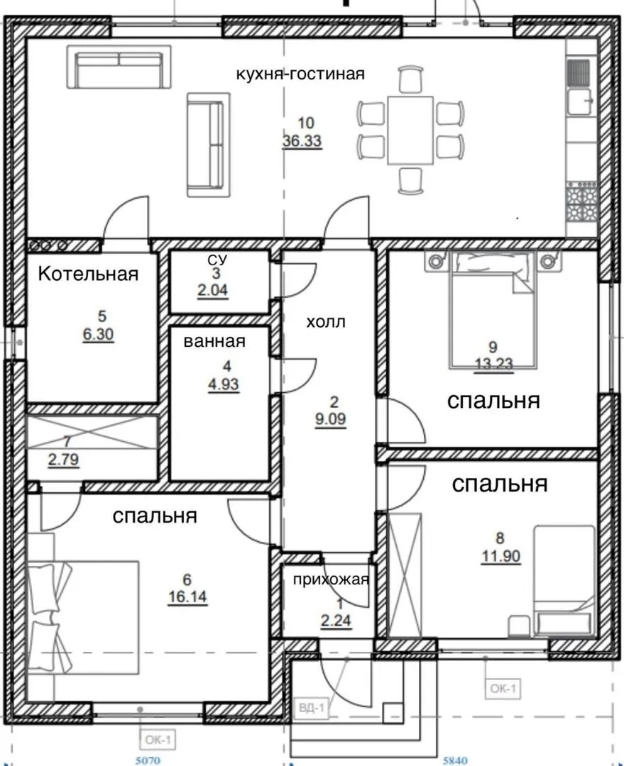 Одноэтажный дом К-90