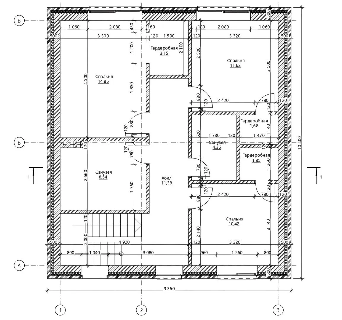 Толщина внутренних перегородок