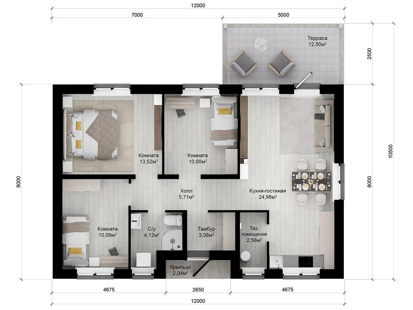 Каменный дом по проекту Неаполь 75