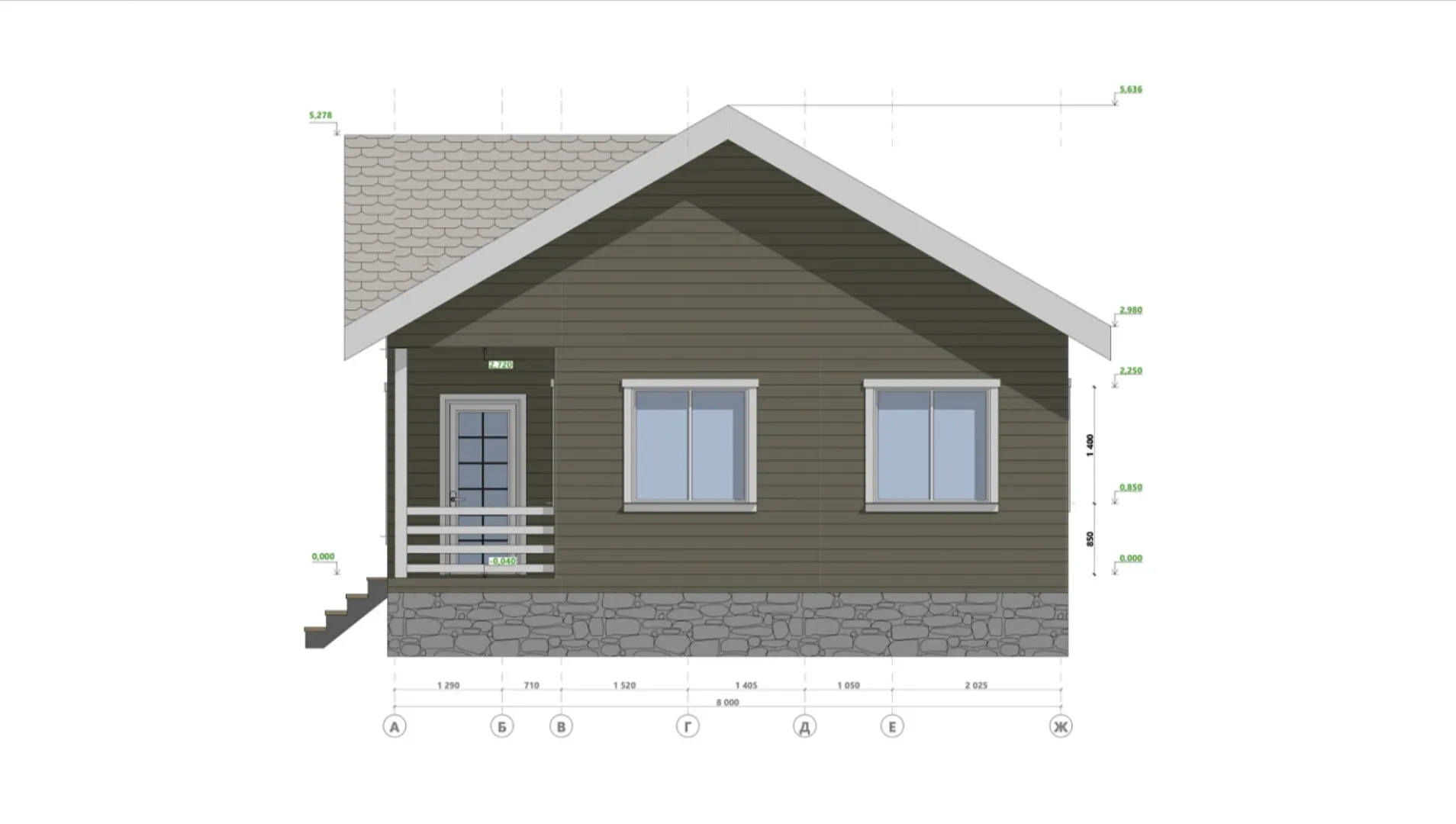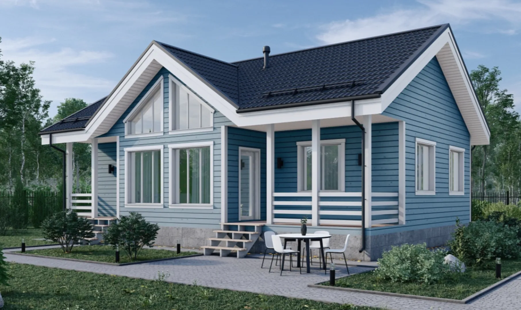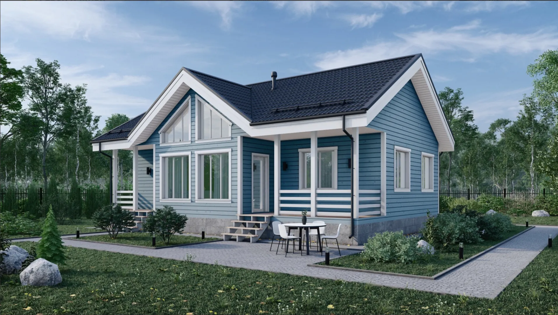Одноэтажный жилой дом c тремя спальнями и крыльцом