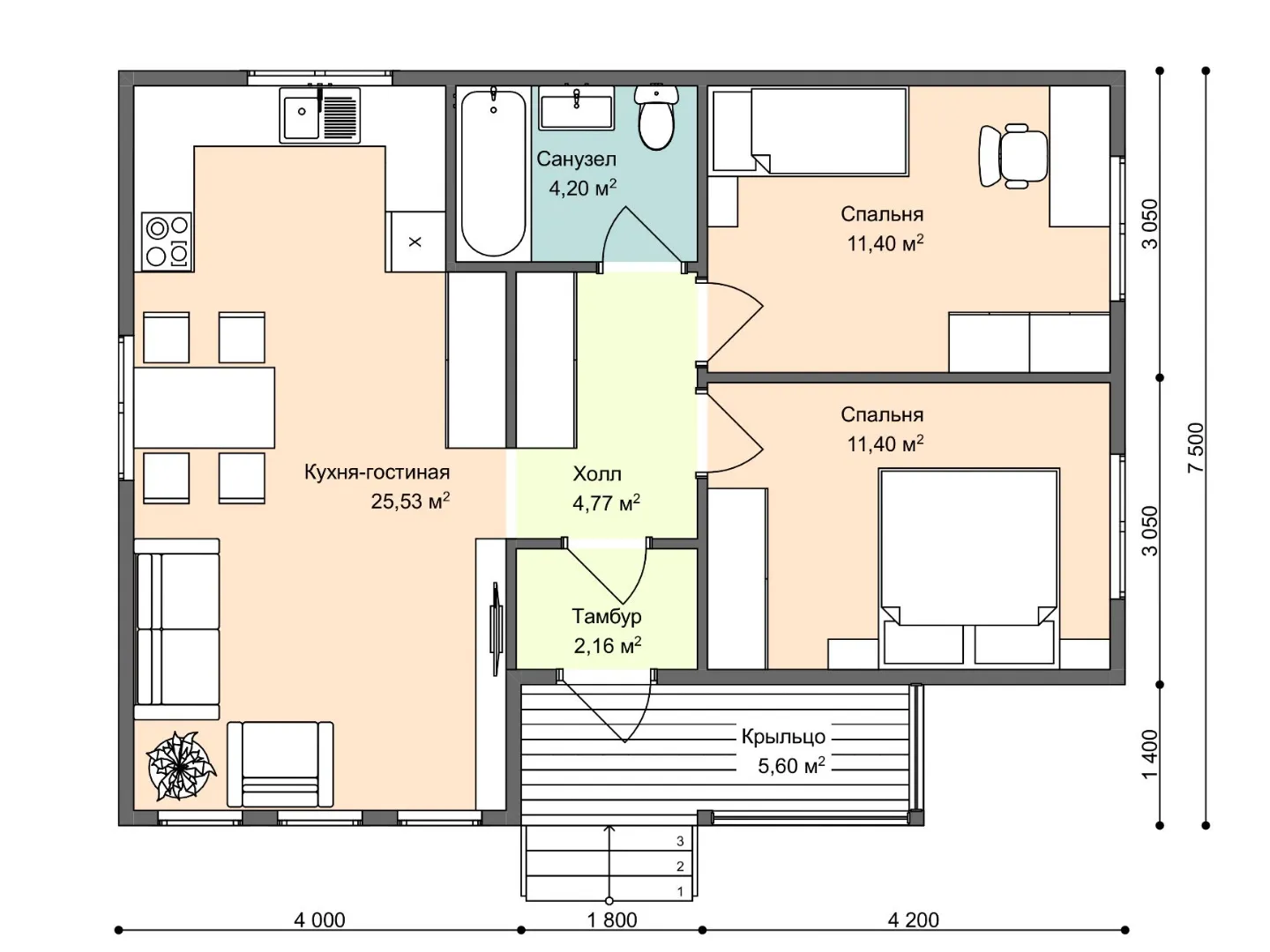 Одноэтажный дом по проекту Латен Макс — 130 м2