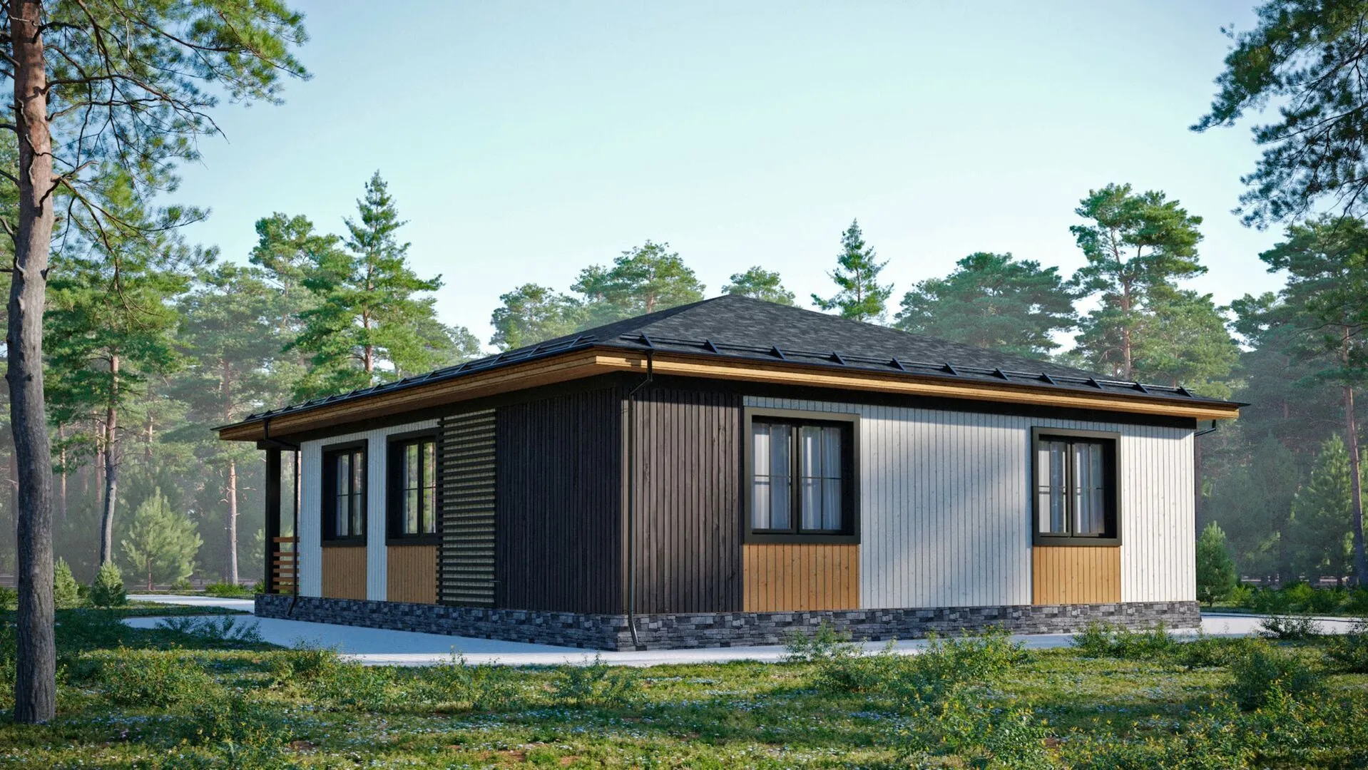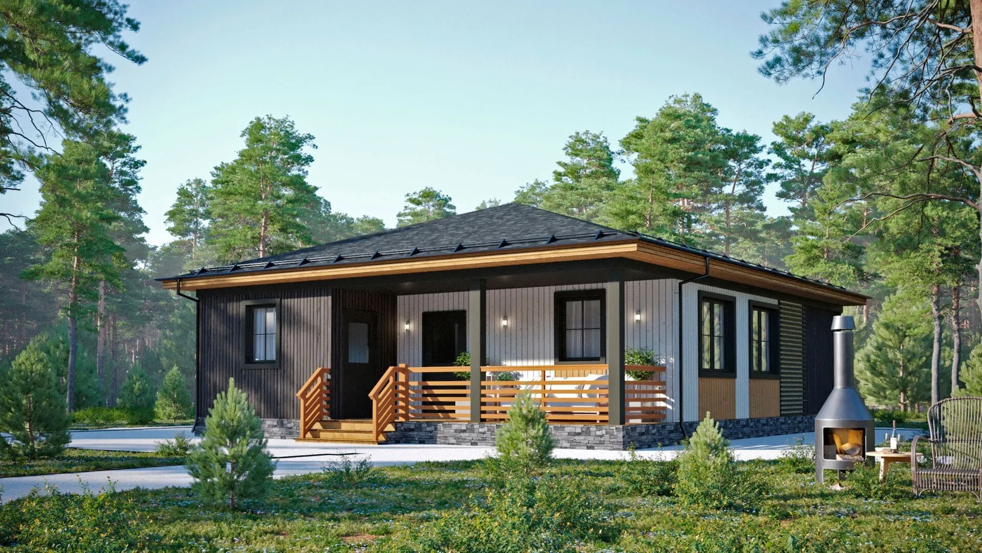 Добро пожаловать в уютный уголок, где современный комфорт встречается с традиционной элегантностью. Каркасный дом D143‑1, выполненный в классическом стиле, уже готов принять вас в круглогодичное проживание. Одноэтажная планировка обеспечивает простоту перемещения, а обилие естественного света в комнатах создаёт ощущение простора даже в небольших помещениях. Дом обрамлен изысканным деревянным каркасом, что придаёт ему неповторимый шарм и тепло. На крыше спроектирована четырёхскатная (вольмовая) конструкция, обеспечивающая прочность и защиту от атмосферных осадков. Уютная веранда служит идеальным местом для завтраков на свежем воздухе, встреч с гостями или тихого чтения за чашкой кофе. В D143‑1 отсутствуют лишние прицепы к жизни – ни балконы, ни террасы, ни подвалы, ни автостоянка – всё пространство сохраняет чистоту и открытость. Если вам важна простая, но стильная квартира, где каждое решение продумано до мелочей, этот дом станет вашим идеальным домом. ✨