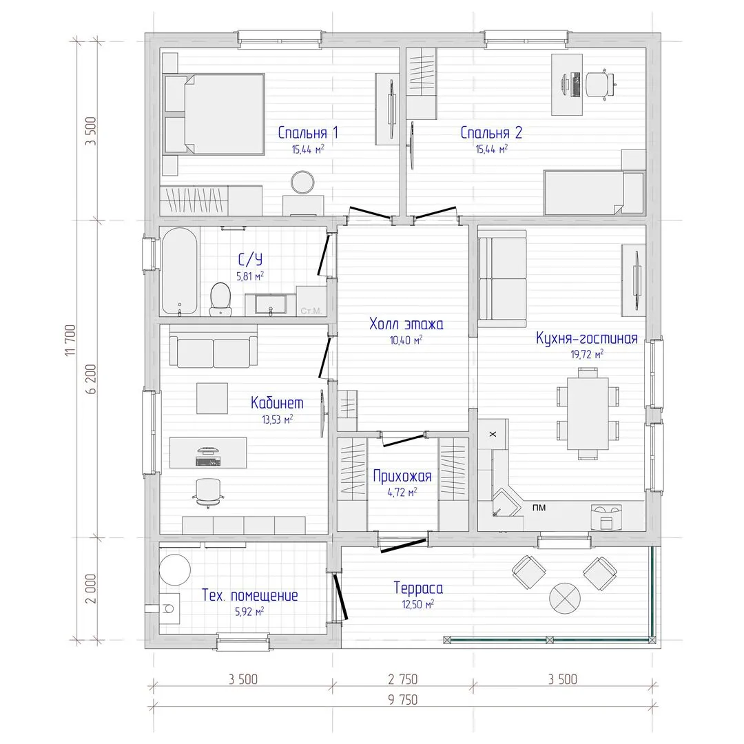 Площадь дома 103 м2