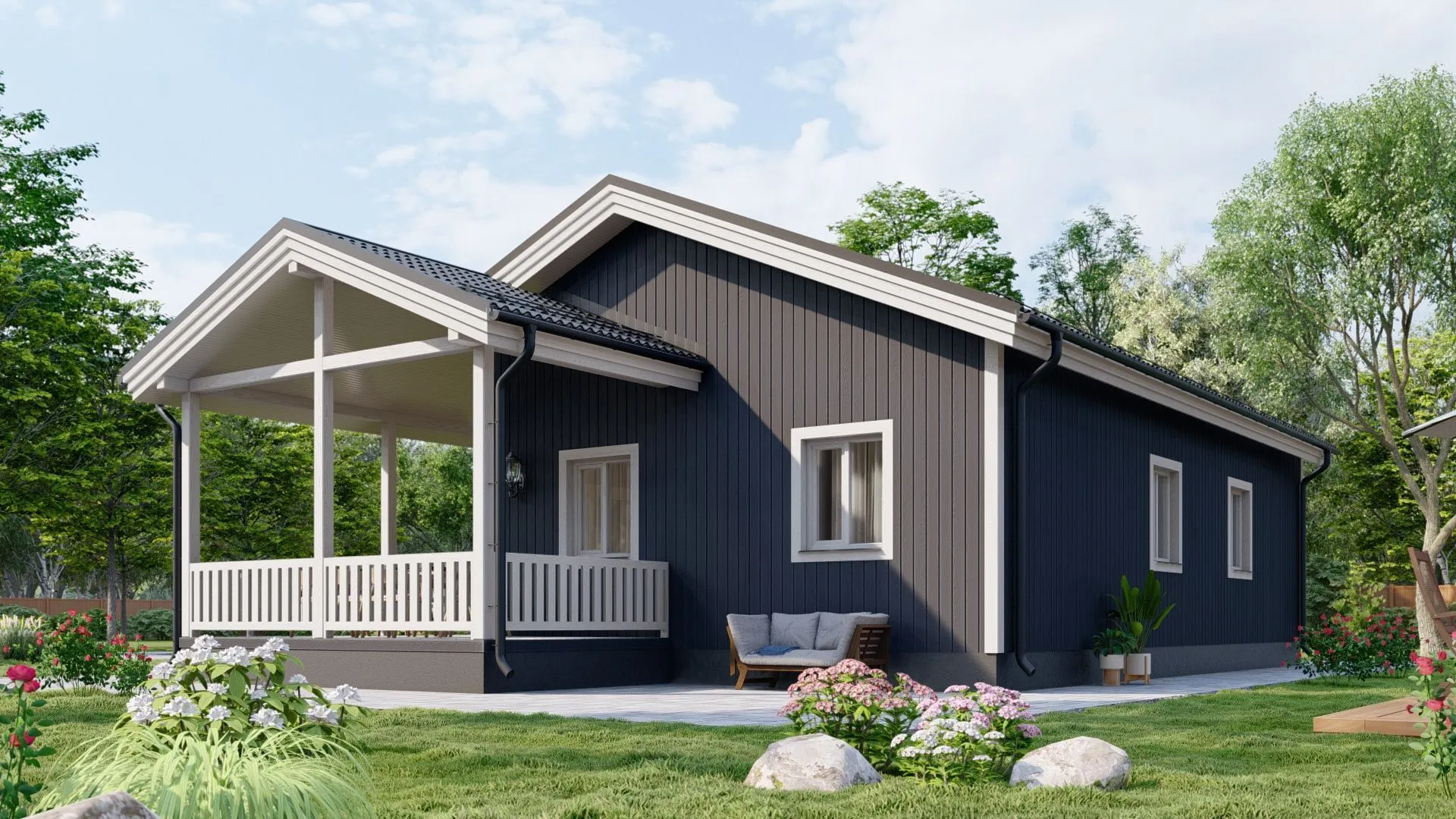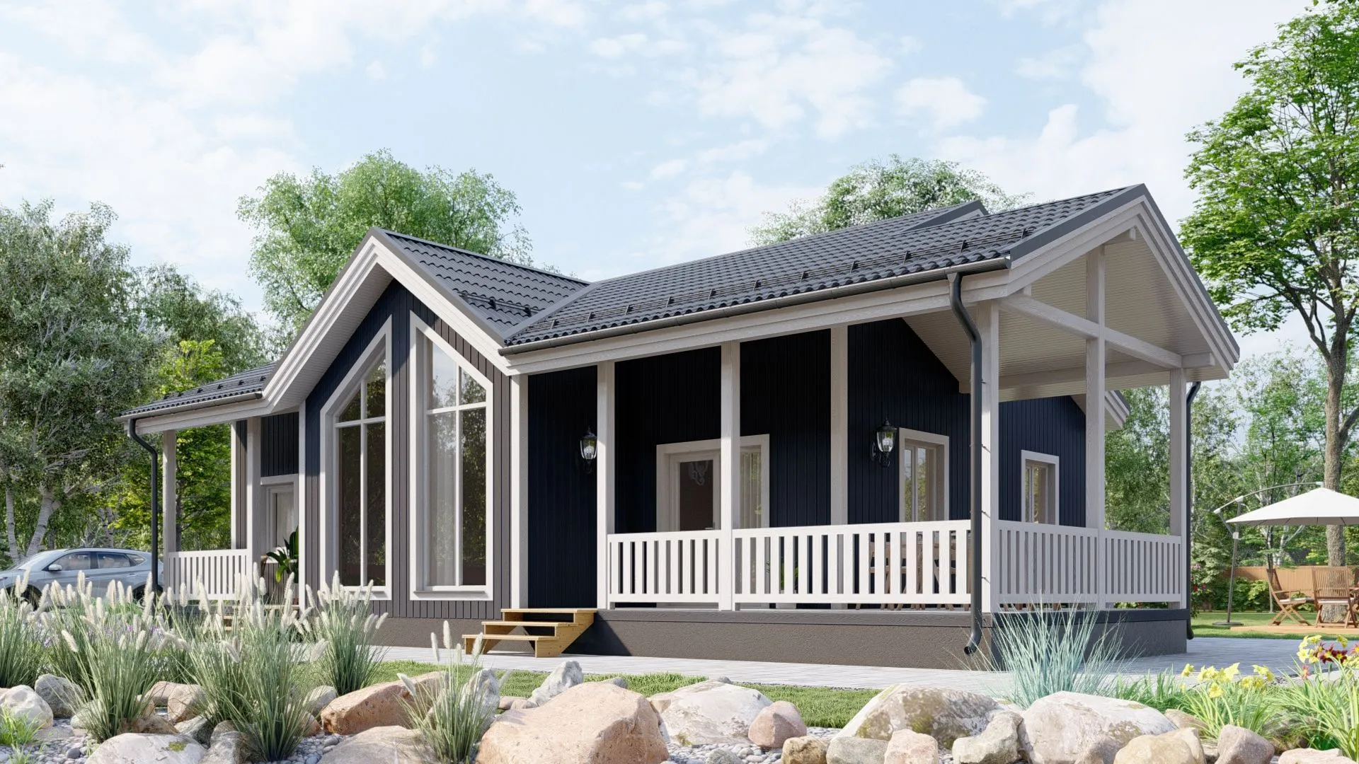 Забудьте о суетливой городской жизни и окунитесь в уют и гармонию скандинавского минимализма. Наш каркасный дом в Финляндии – это идеальное сочетание традиционной древесной простоты и современного комфорта. Одна надземная этажа обеспечивает просторную, светлую жилую площадь, а чердачное помещение превращается в уютный уголок для творчества, книжных уголка или детской комнаты. Годовое проживание стало возможным благодаря качественной теплоизоляции, которая сохраняет тепло даже в самые суровые зимы шведской долины. Стильный дизайн без балконов и веранд не означает отсутствие открытого пространства: широкая терраса приглашает к вечерним беседам с друзьями, наблюдениям за северными светами или уютным чашкам горячего какао после прохладного вечера. Деревянные каркасные стены не только подчеркивают естественность и экологичность, но и создают приятную акустику, поглощая шум внешнего мира. Двускатная кровля, характерная для северных стран, гармонично вписывается в местный ландшафт, а отсутствие пристроенного гаража напоминает о простой, но стильной жизни, где автомобиль – просто удобство, а не часть дома. Этот дом – это ваш личный островок спокойствия, где каждая деталь продумана до мелочей: от теплых деревянных панелей до обустроенной террасы, предназначенной для вдохновения и отдыха. Приглашаем вас открыть для себя новое определение уюта и простора, где скандинавский дизайн живёт в ритме природы.