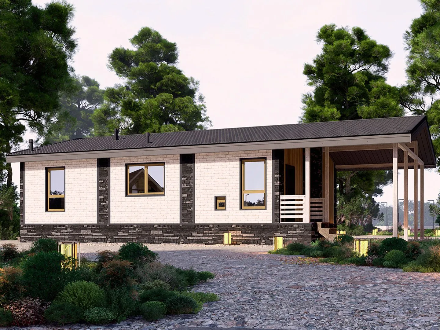 Каркасный дом Марбург 118 — это сочетание европейского стиля и современных требований к комфорту. На одном надземном этаже располагены просторные зоны гостиной, кухни и уютного семейного помещения, которые придают дому ощущение открытости и светлости, как будто он создан для круглогодичного обитания. Внутри дома легко ориентироваться, а все пространства проработаны так, чтобы каждая зона удовлетворяла потребности как больших, так и маленьких семей. Отдельный пристроенный гараж обеспечивает удобную скрытую парковку, а живописная терраса приглашает в летние вечеринки или тихие зимние кофейные чаепития. Внешние стены выполнены из прочного деревянного каркаса, а комбинированная кровля добавляет надежности и эстетического шарма. Внутри чувствуется легкая теплоизоляция и уют, а элегантный европейский дизайн подчёркивает статус и класс. Такой дом легко впишется в любой городской ландшафт и создаст ощущение домашнего уюта в любой временных года. Сделайте шаг к своей мечте уже сегодня: этот дом — ваш идеальный выбор для тех, кто ценит качество, эстетику и практичность. Позвоните нам и узнайте подробнее о комплектации, стоимости и сроках изготовления!